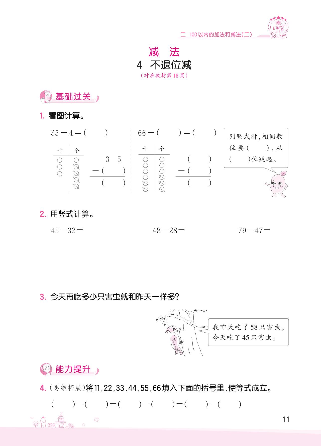 2022上册二年级数学人教版 二 100以内的加法和减法(二)——4 不退位减
