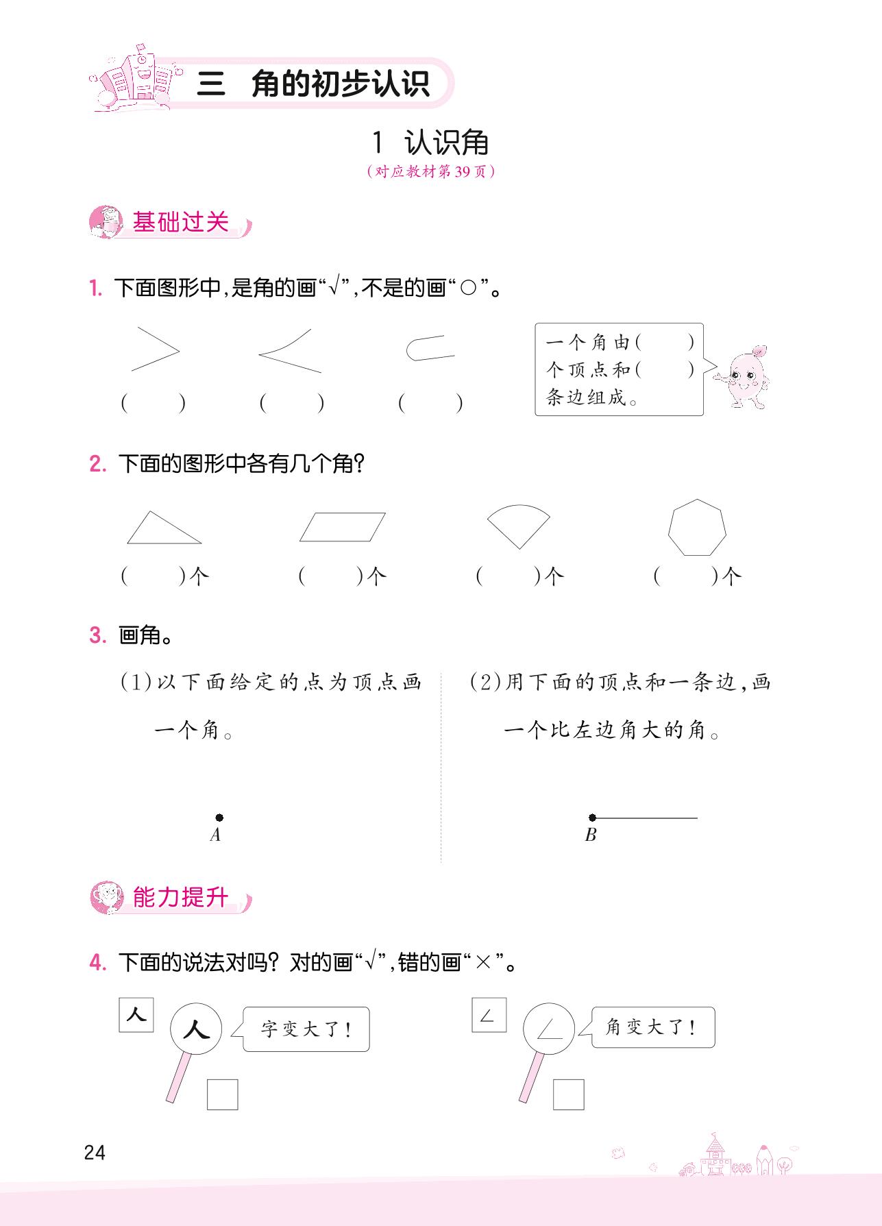 2022上册二年级数学人教版 三 角的初步认识——1 认识角
