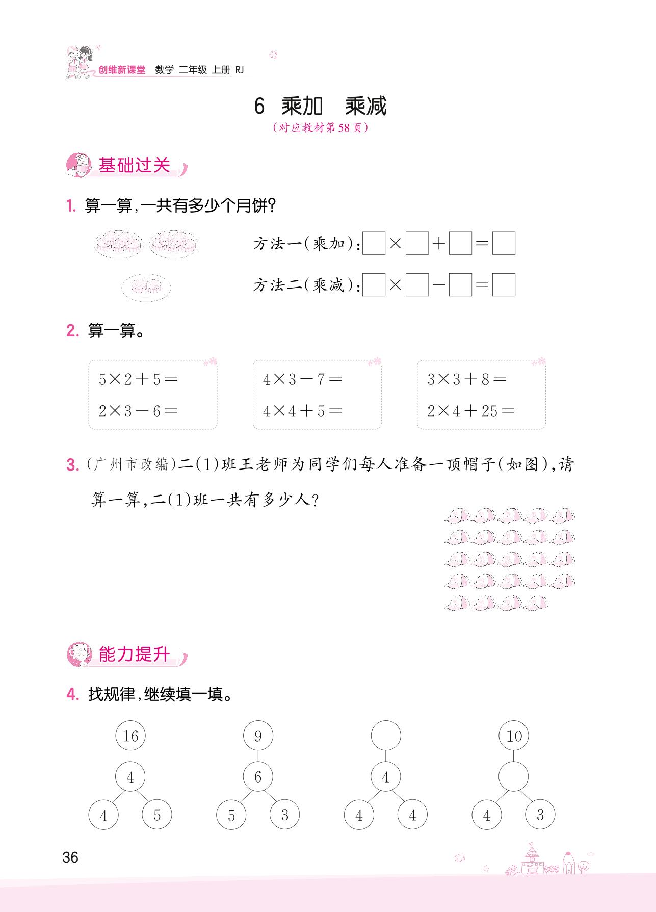 2022上册二年级数学人教版 四 表内乘法(一)——6 乘加 乘减