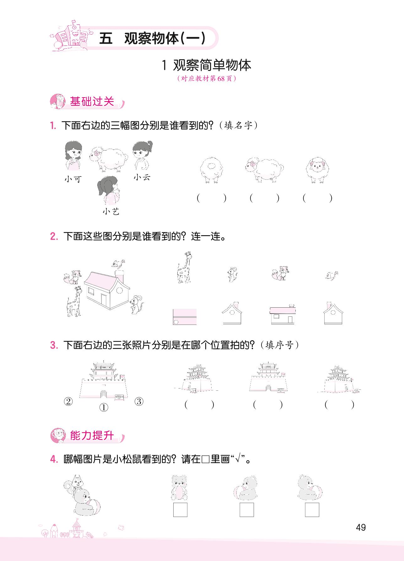 2022上册二年级数学人教版 五 观察物体(一)——1 观察简单物体