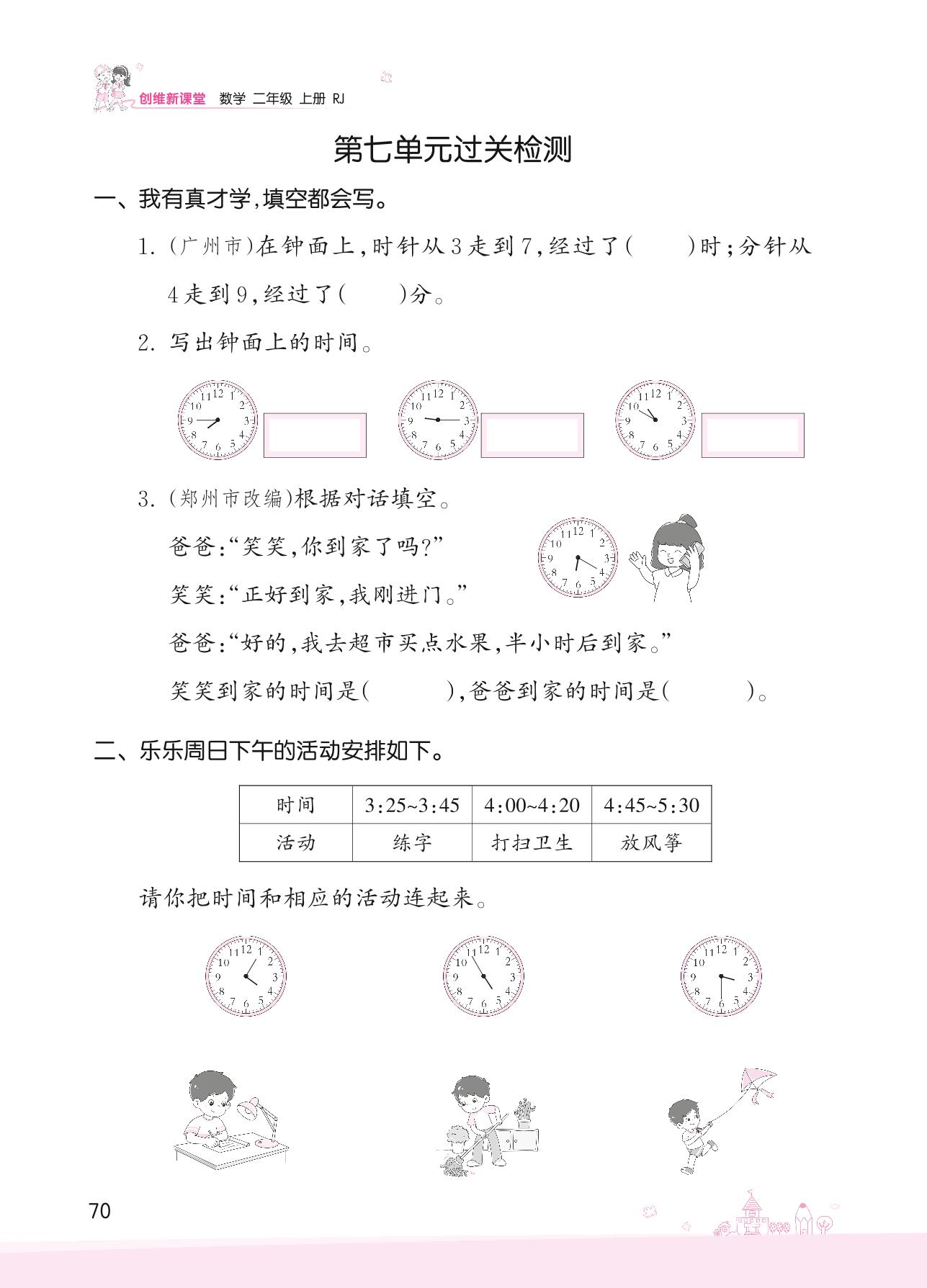 2022上册二年级数学人教版 七 认识时间——第七单元过关检测