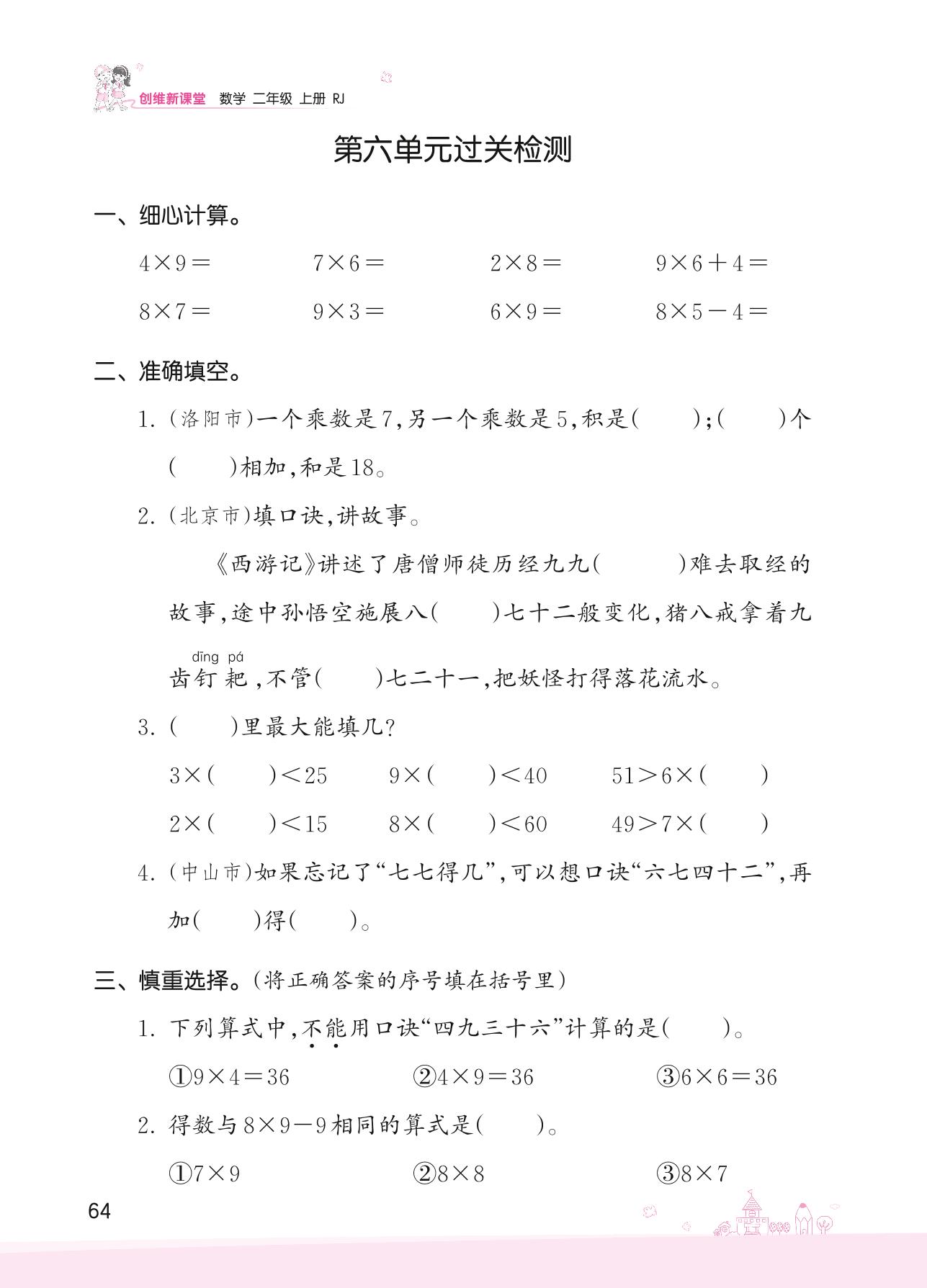 2022上册二年级数学人教版 六 表内乘法(二)——第六单元过关检测