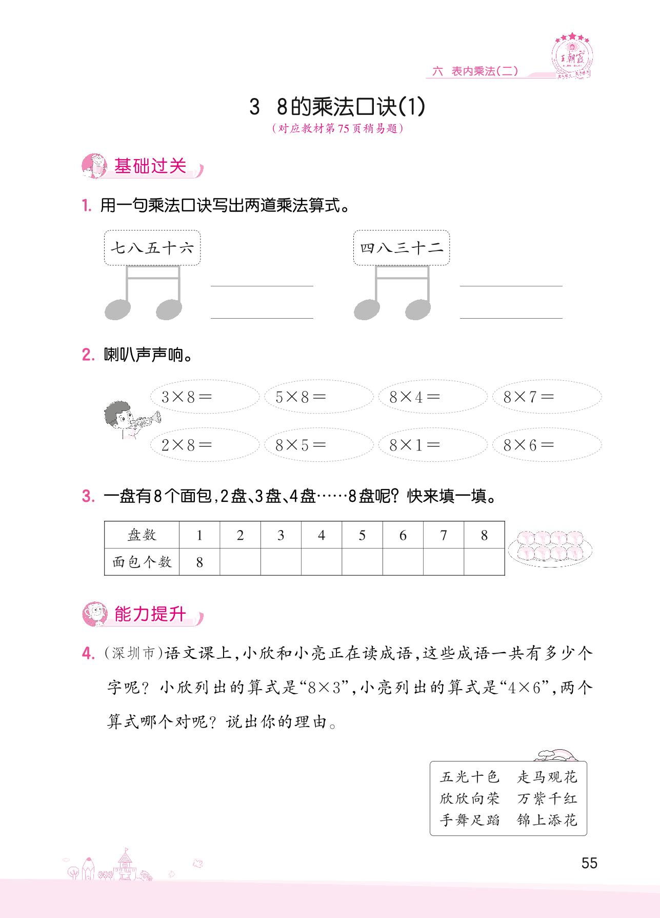 2022上册二年级数学人教版 六 表内乘法(二)——3 8的乘法口诀(1)