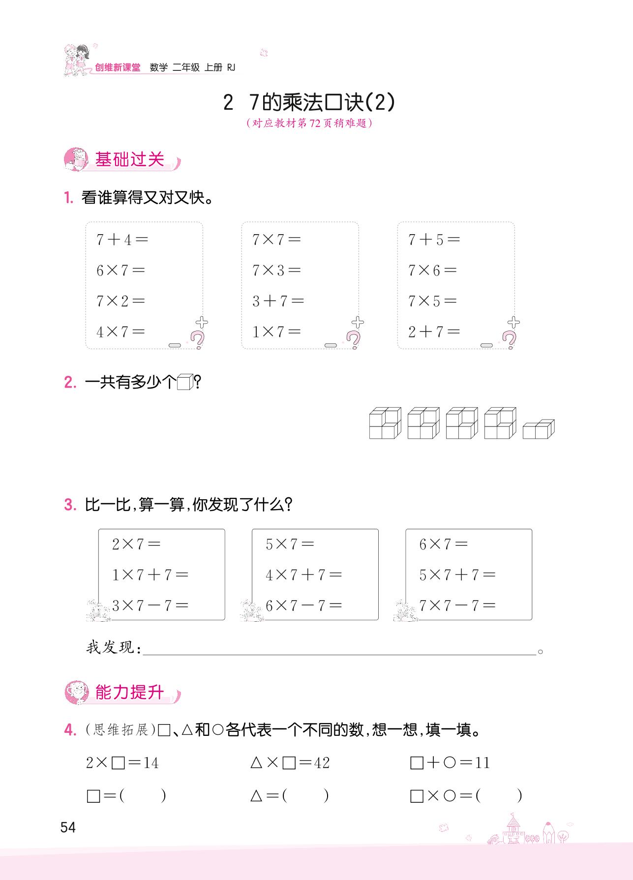 2022上册二年级数学人教版 六 表内乘法(二)——2 7的乘法口诀(2)