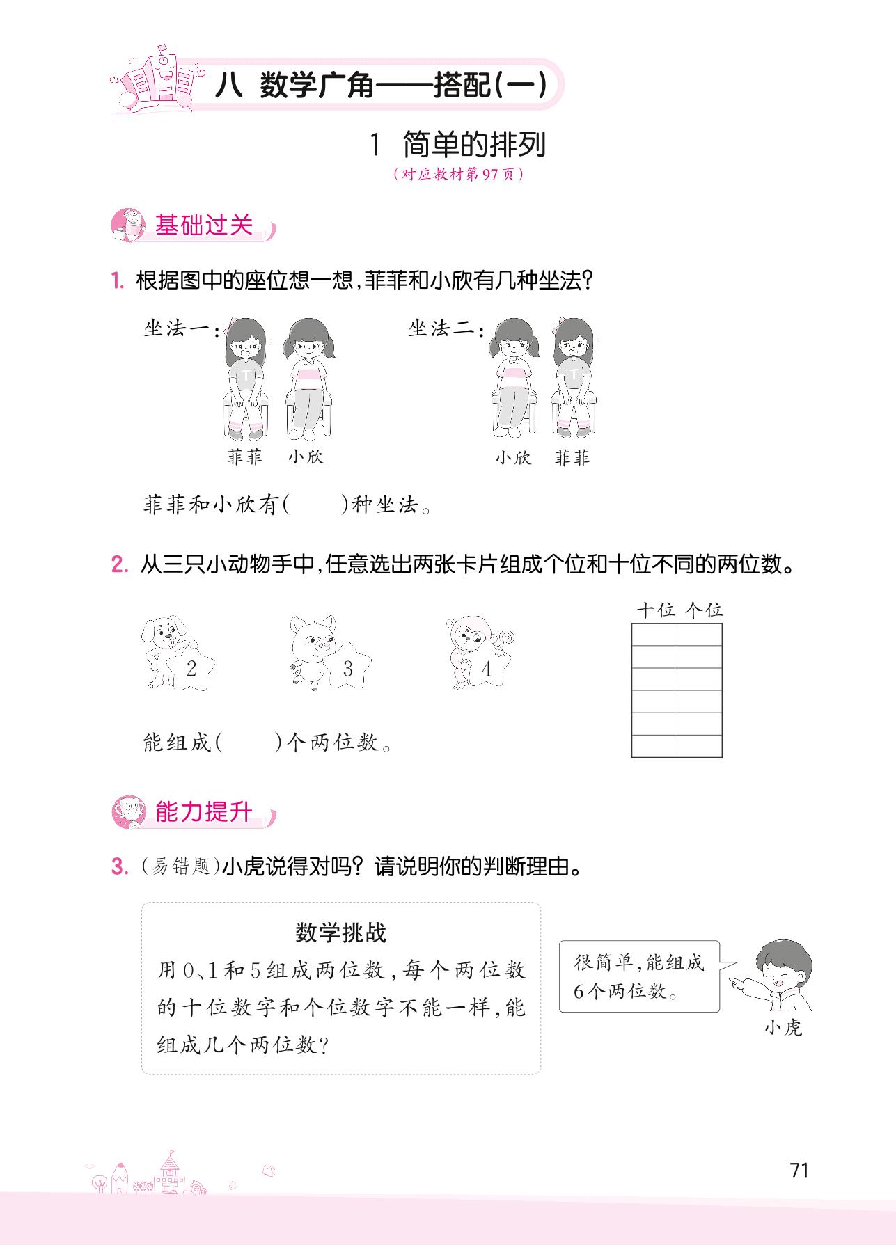 2022上册二年级数学人教版 八 数学广角 搭配(一)——1 简单的排列