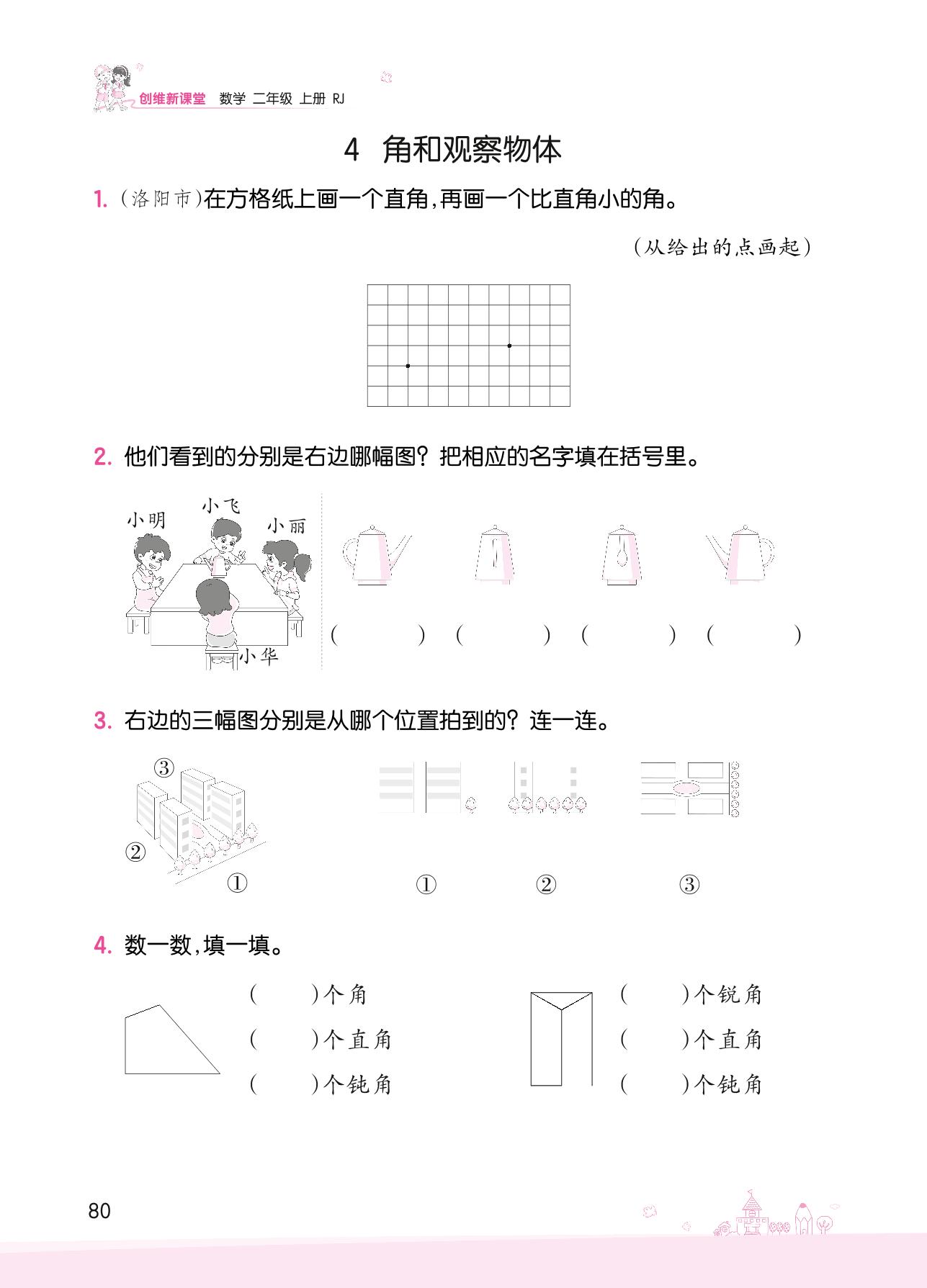 2022上册二年级数学人教版 九 总复习——4 角和观察物体