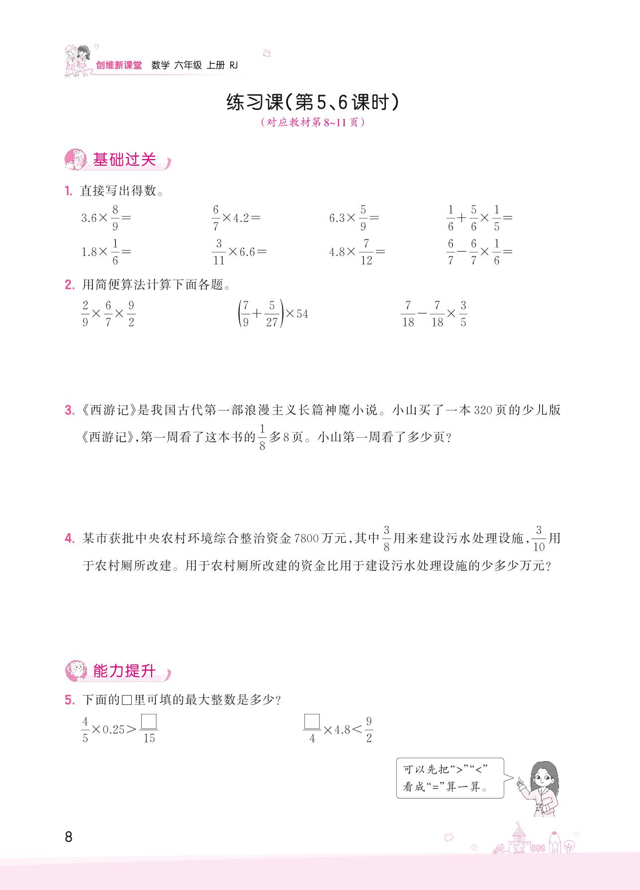 2022上册六年级数学人教版 一 分数乘法——练习课(第5、6课时)