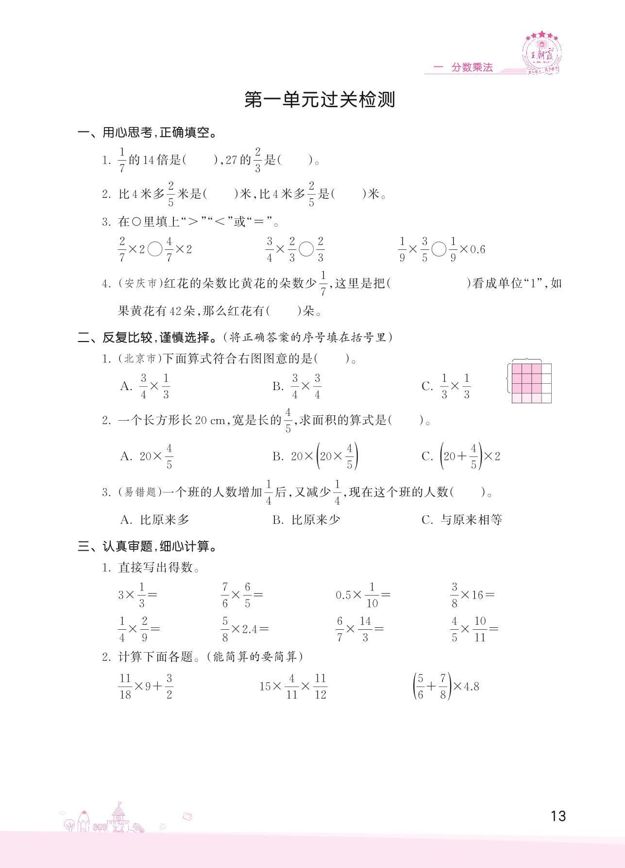 2022上册六年级数学人教版 一 分数乘法——第一单元过关检测