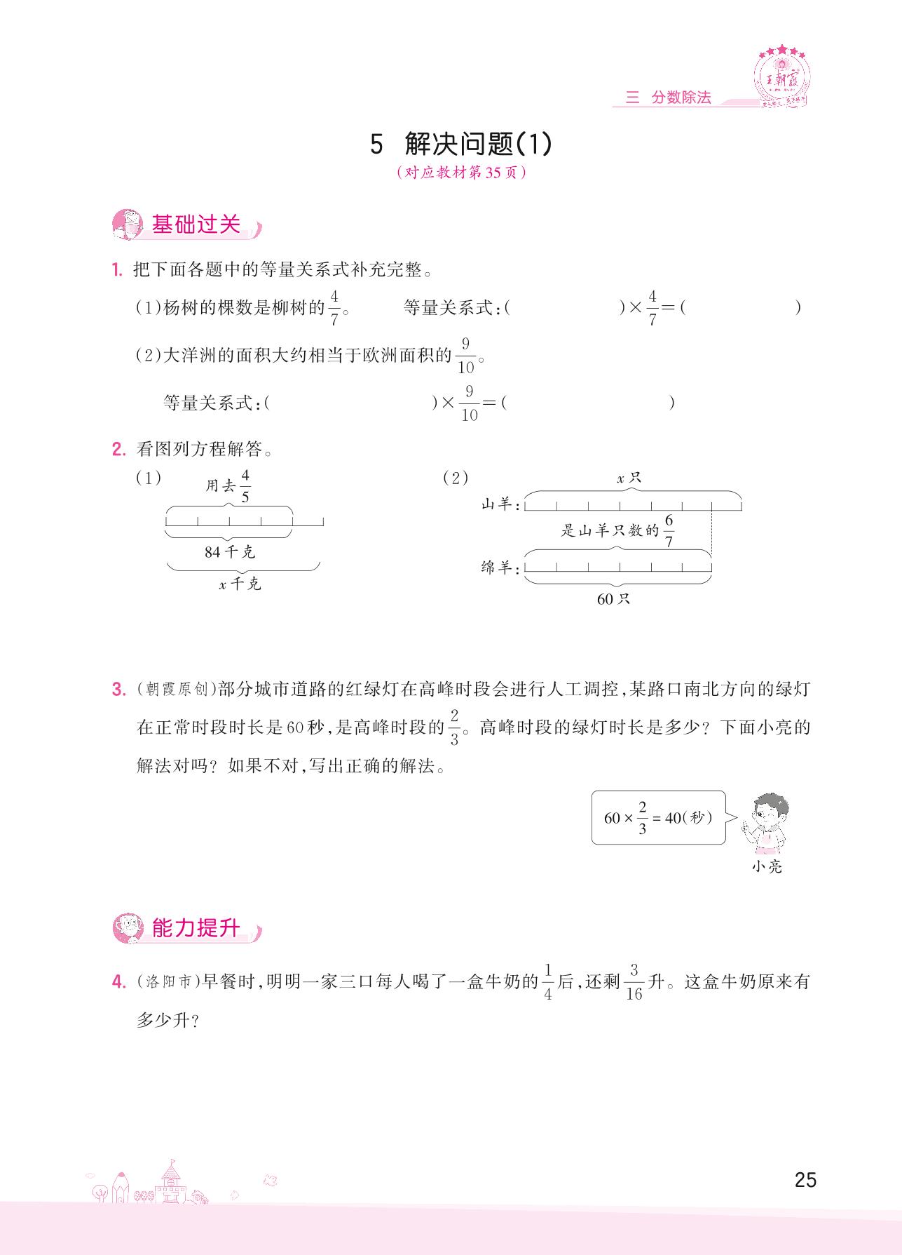 2022上册六年级数学人教版 三 分数除法——5 解决问题(1)