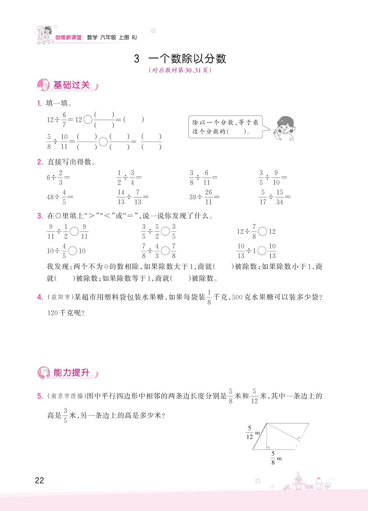 2022上册六年级数学人教版 三 分数除法——3 一个数除以分数