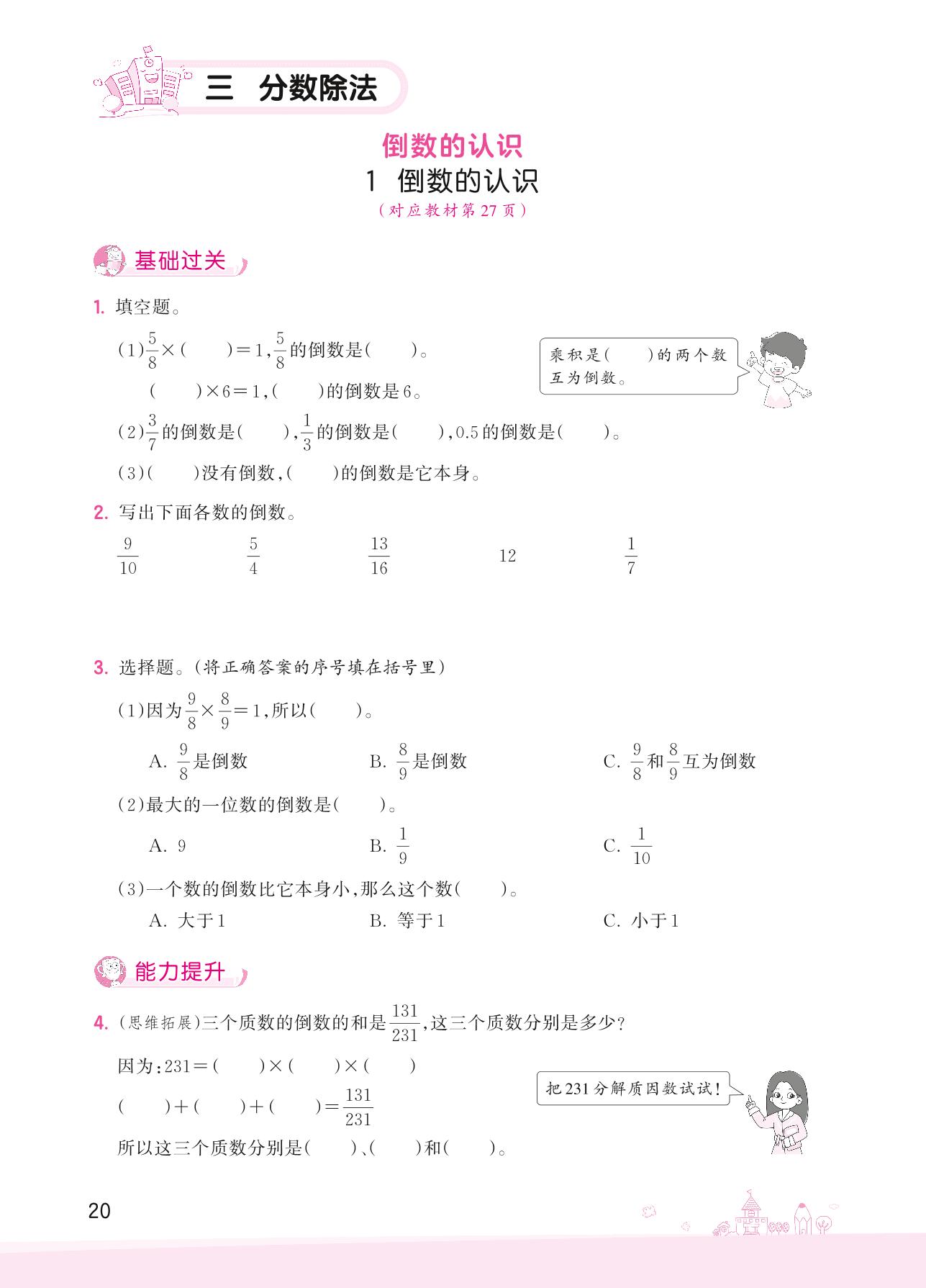 2022上册六年级数学人教版 三 分数除法——1 倒数的认识