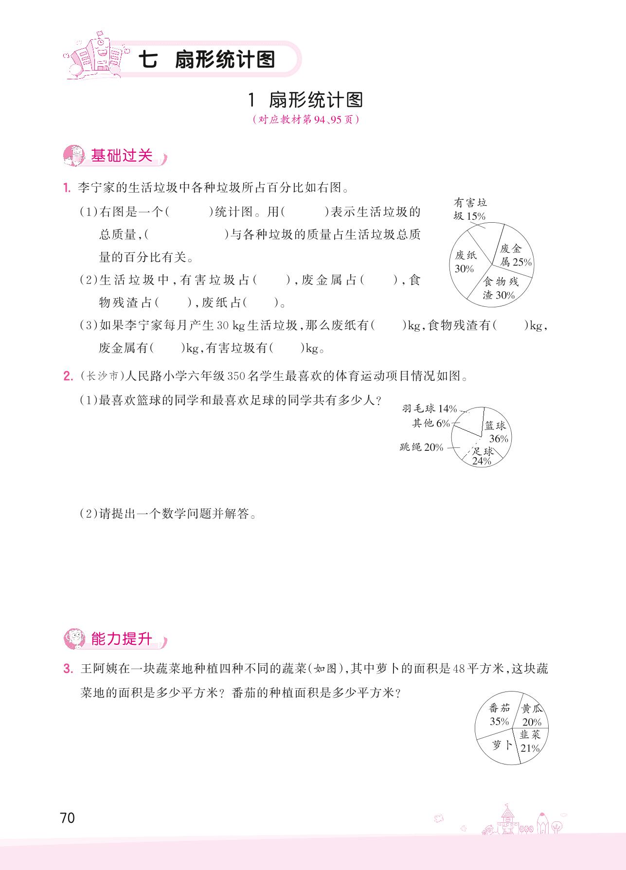 2022上册六年级数学人教版 七 扇形统计图——1 扇形统计图