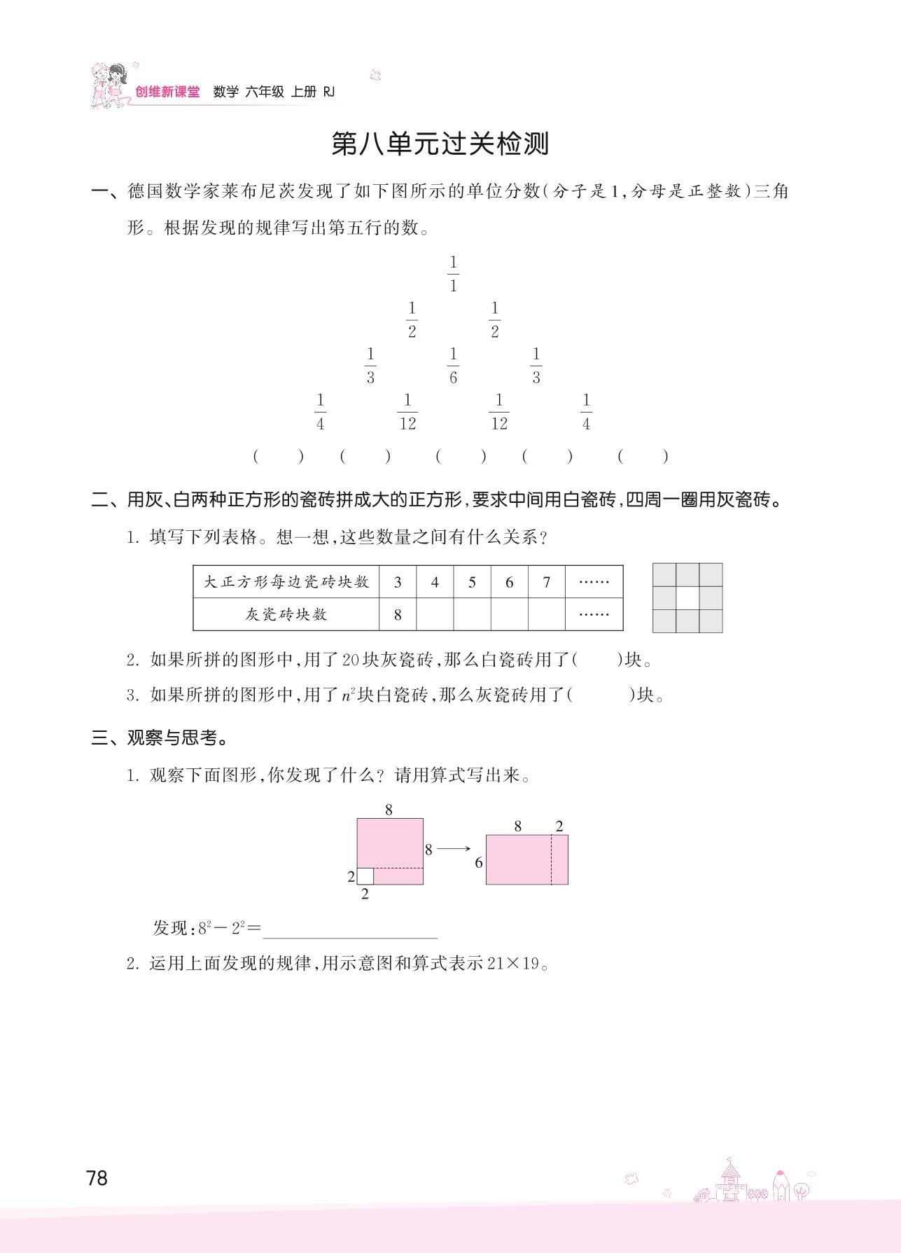 2022上册六年级数学人教版 八 数学广角 数与形——第八单元过关检测