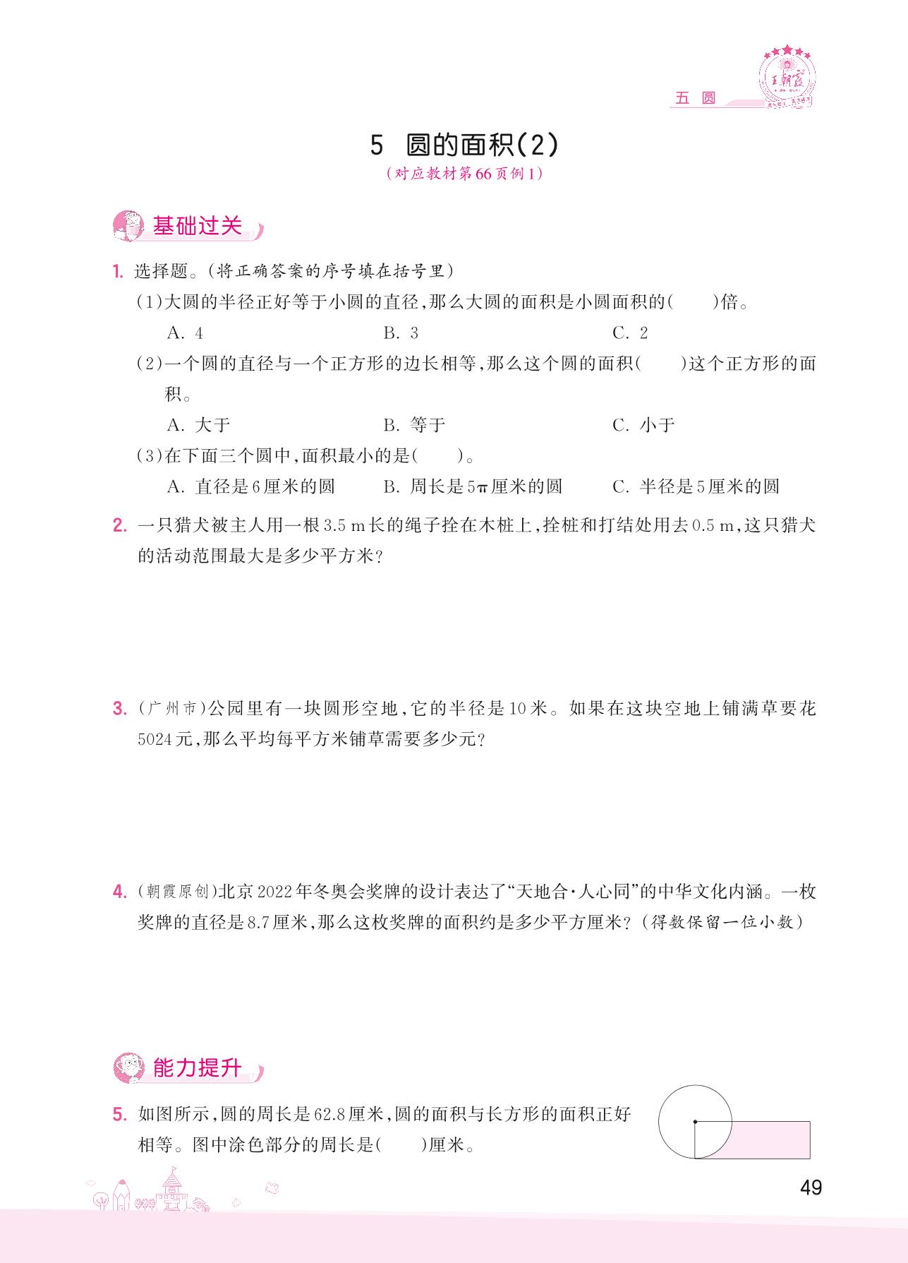 2022上册六年级数学人教版 五 圆——5 圆的面积(2)