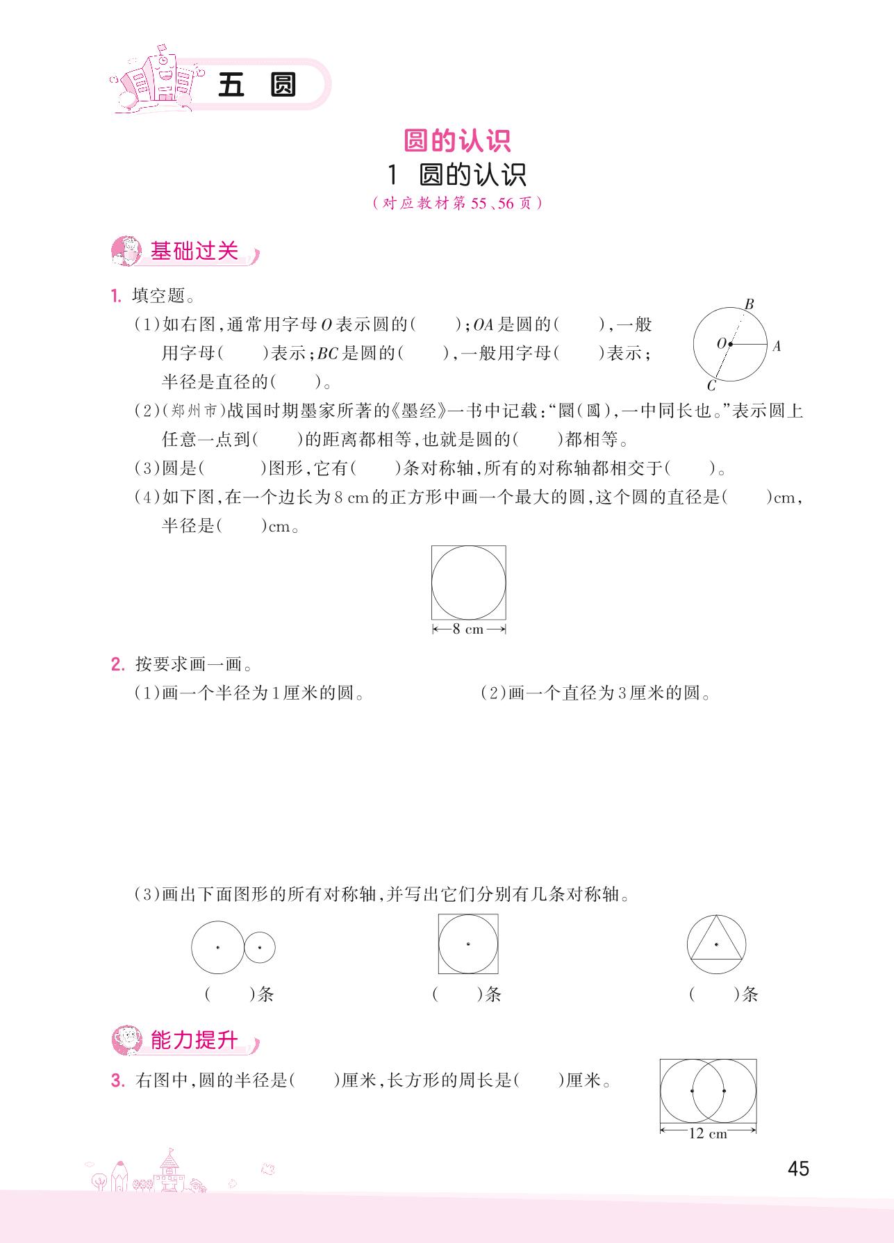 2022上册六年级数学人教版 五 圆——1 圆的认识