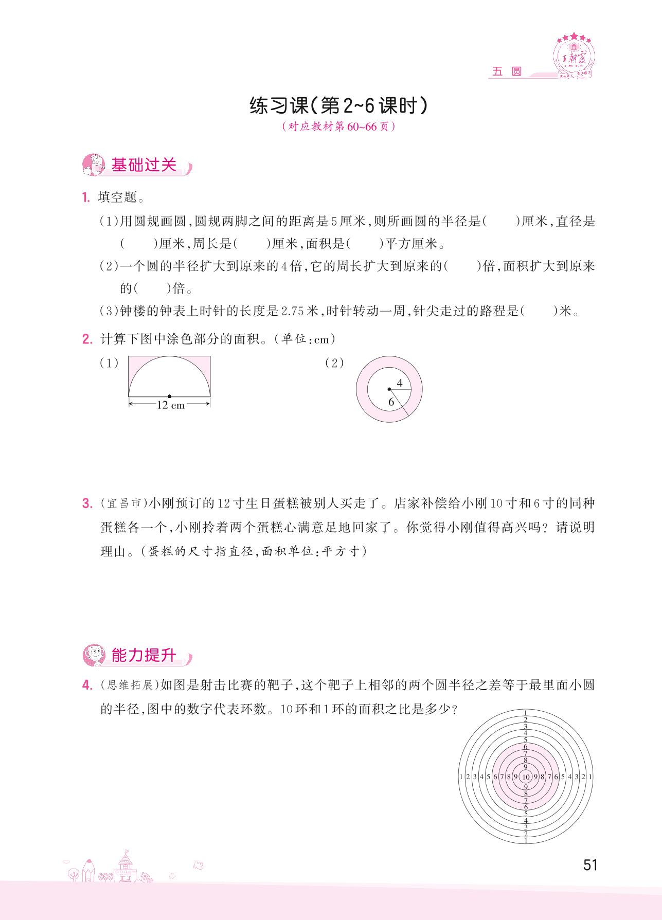 2022上册六年级数学人教版 五 圆——练习课(第2~6课时)