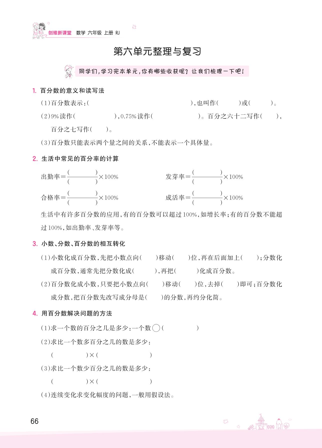 2022上册六年级数学人教版 六 百分数(一)——第六单元整理与复习