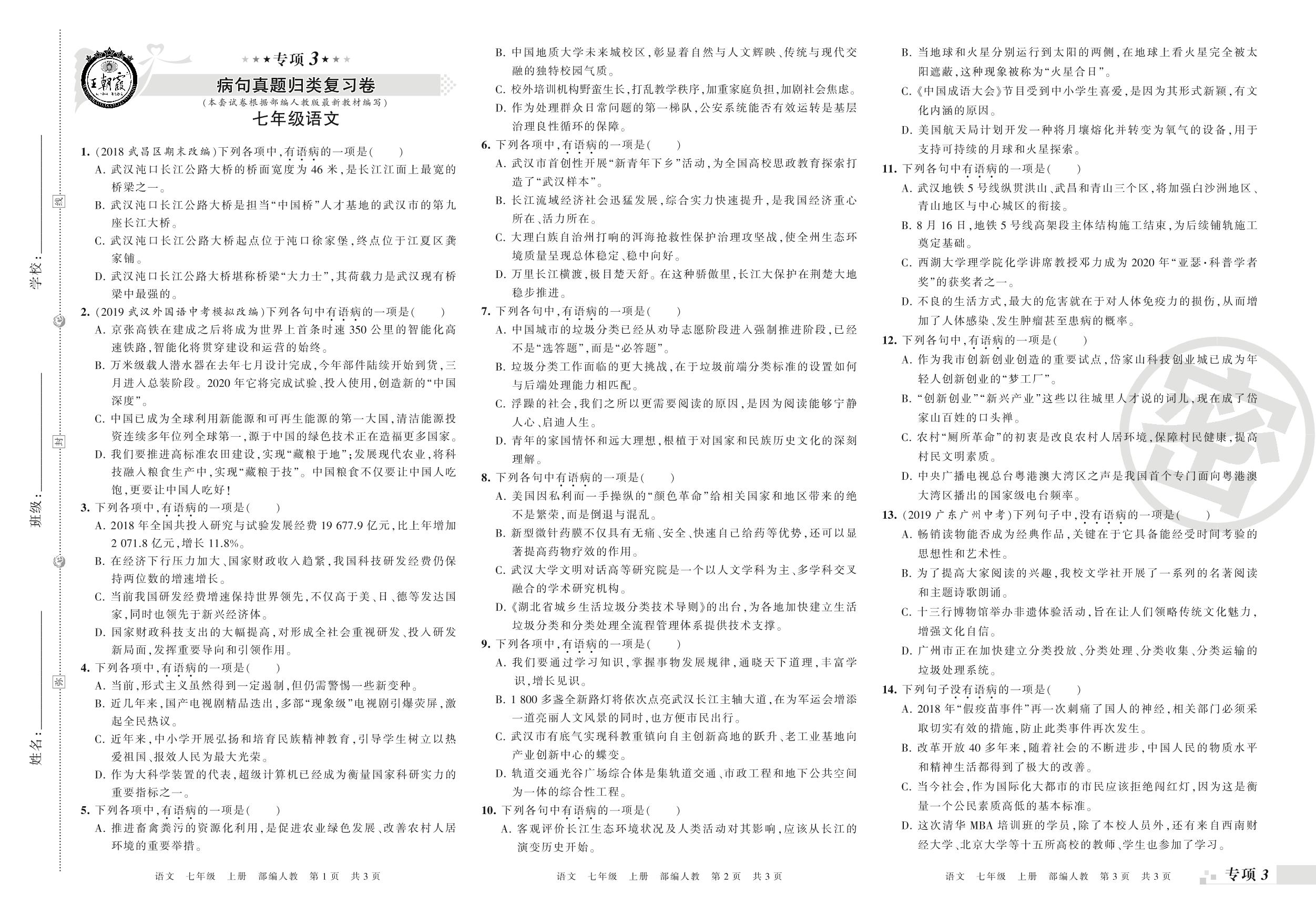 王朝霞期末专项卷——病句、语文知识与标点符号真题归类复习七年级上册语文(人教版)_R21080233505【0】