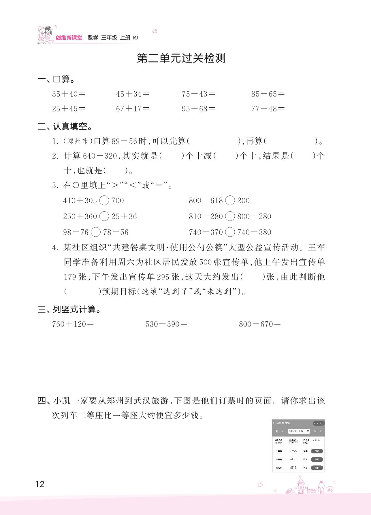 2022上册三年级数学人教版 二 万以内的加法和减法(一)——第二单元过关检测
