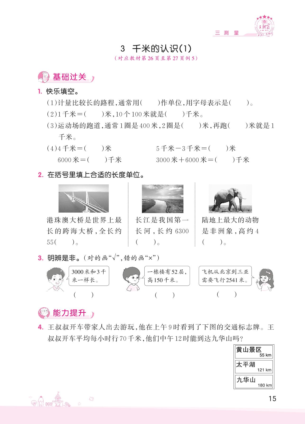 2022上册三年级数学人教版 三 测量——3 千米的认识(1)