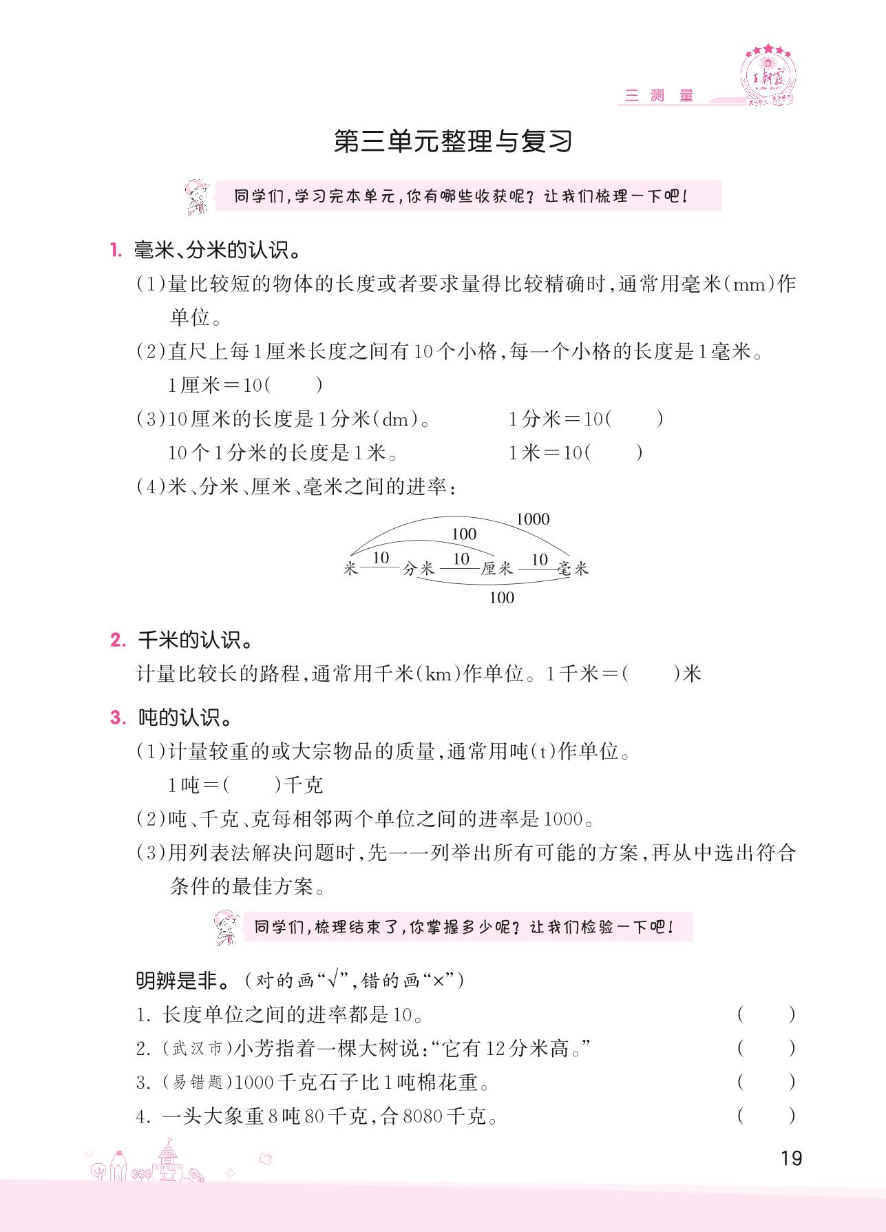 2022上册三年级数学人教版 三 测量——第三单元整理与复习