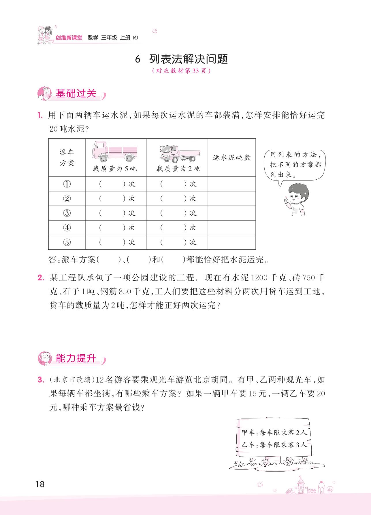 2022上册三年级数学人教版 三 测量——6 列表法解决问题