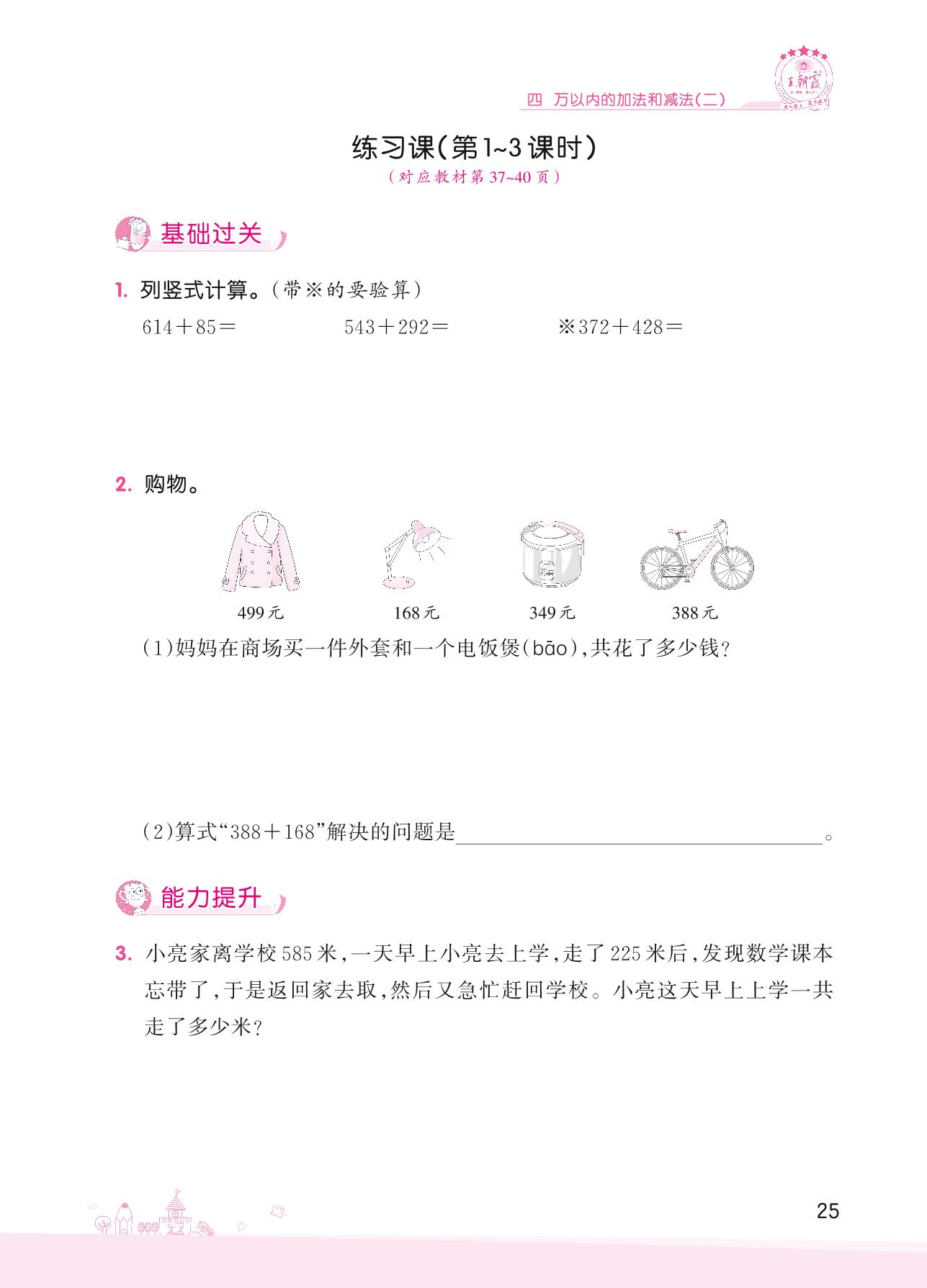 2022上册三年级数学人教版 四 万以内的加法和减法(二)——练习课(第1~3课时)