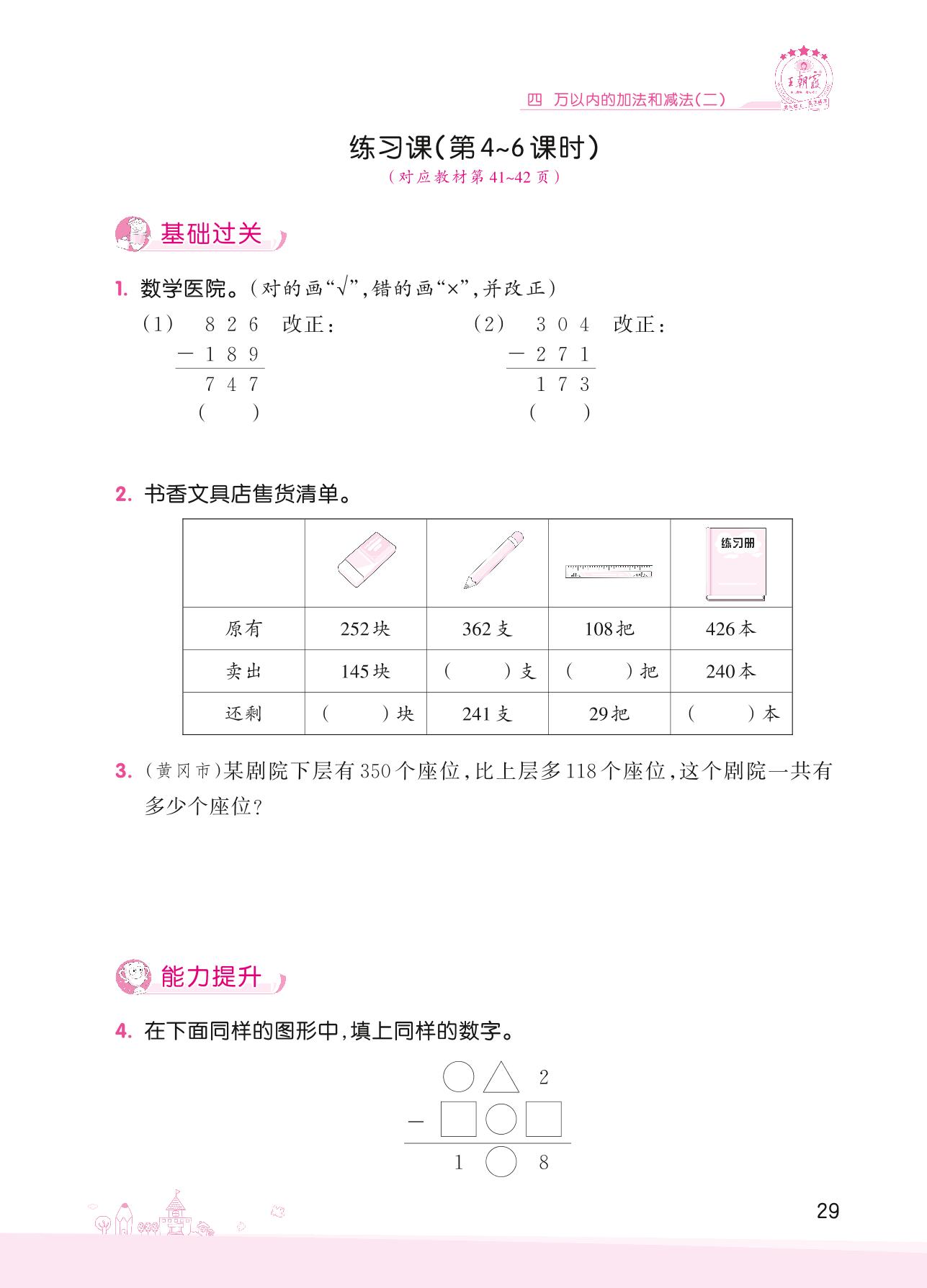 2022上册三年级数学人教版 四 万以内的加法和减法(二)——练习课(第4~6课时)
