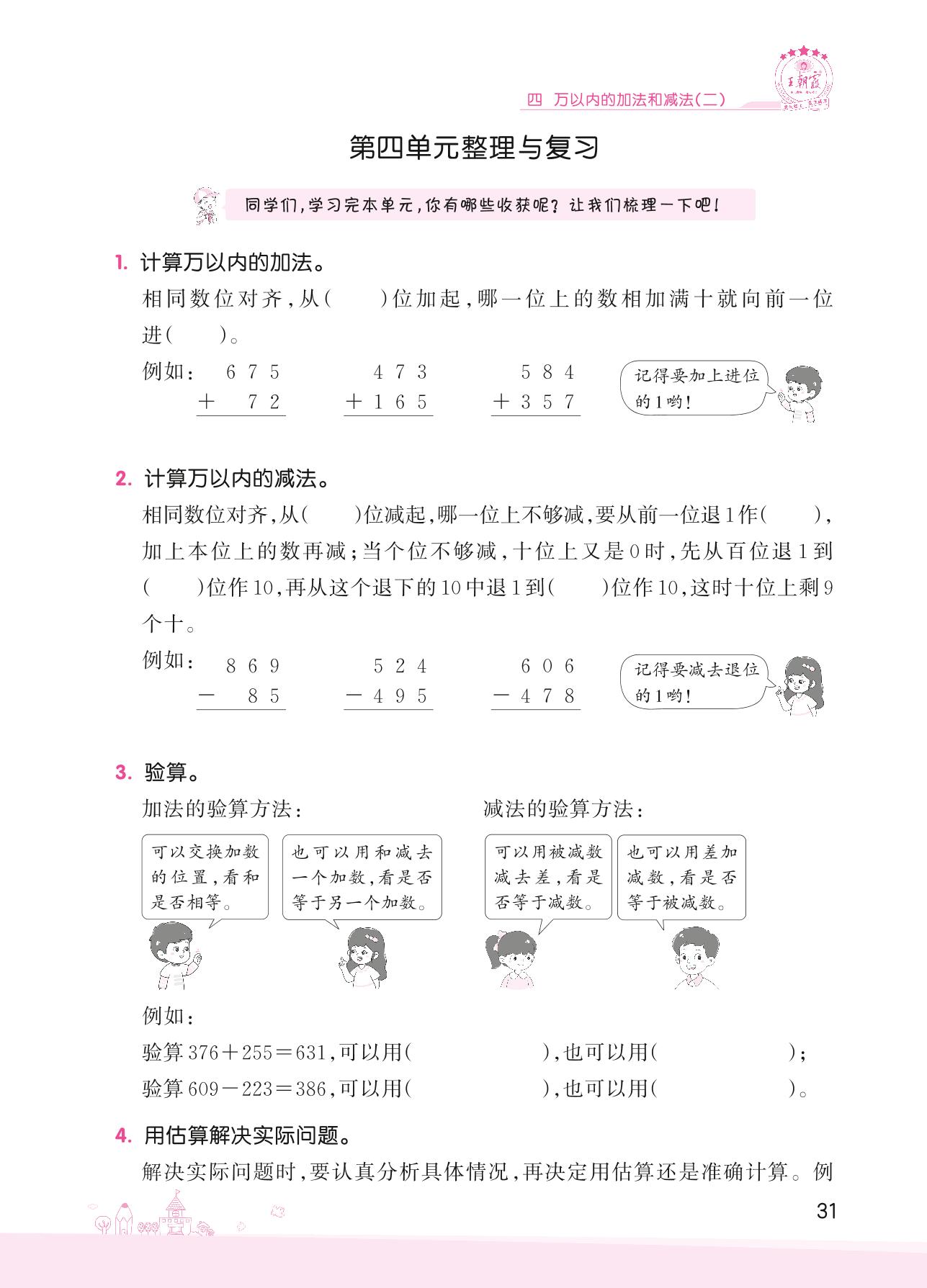 2022上册三年级数学人教版 四 万以内的加法和减法(二)——第四单元整理与复习