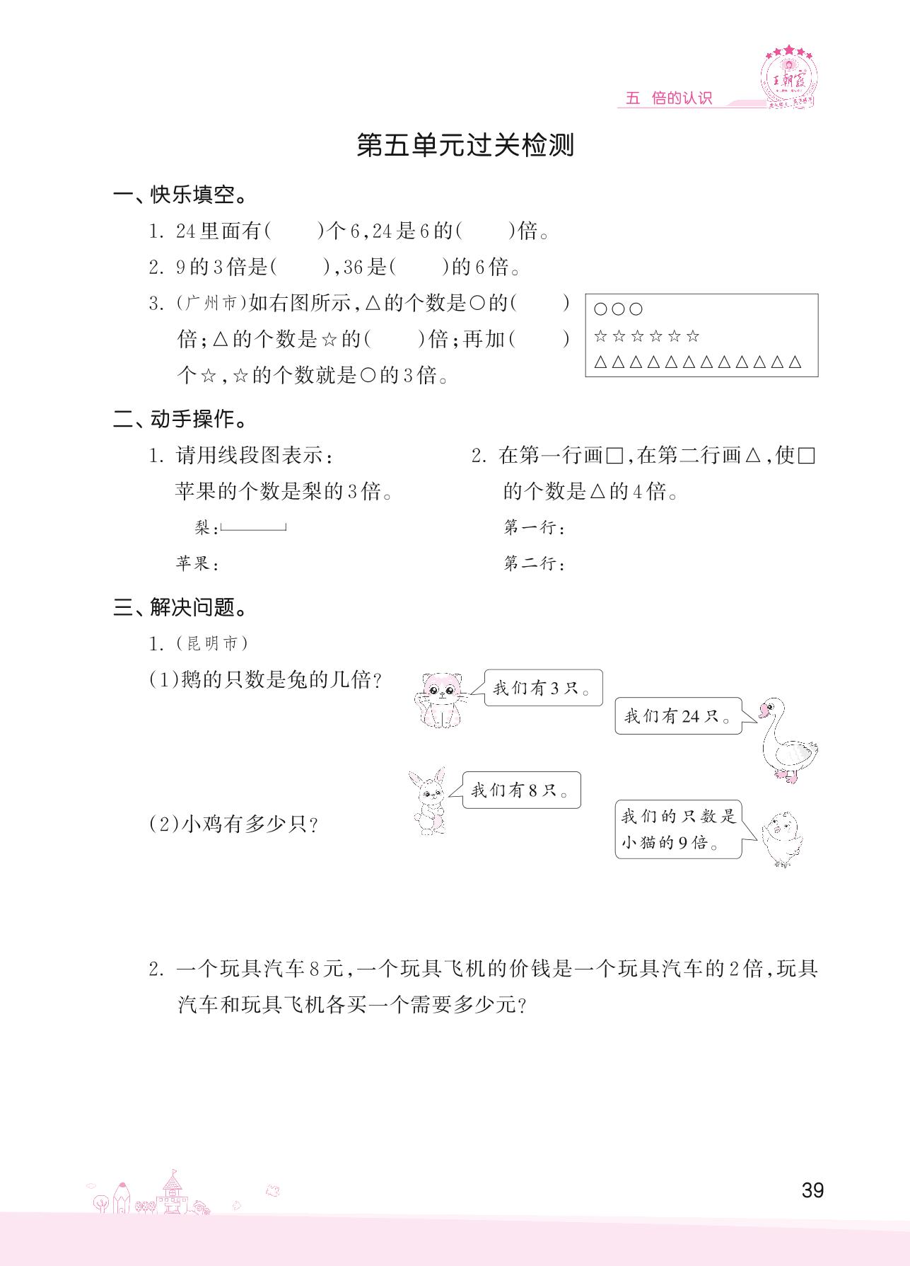 2022上册三年级数学人教版 五 倍的认识——第五单元过关检测