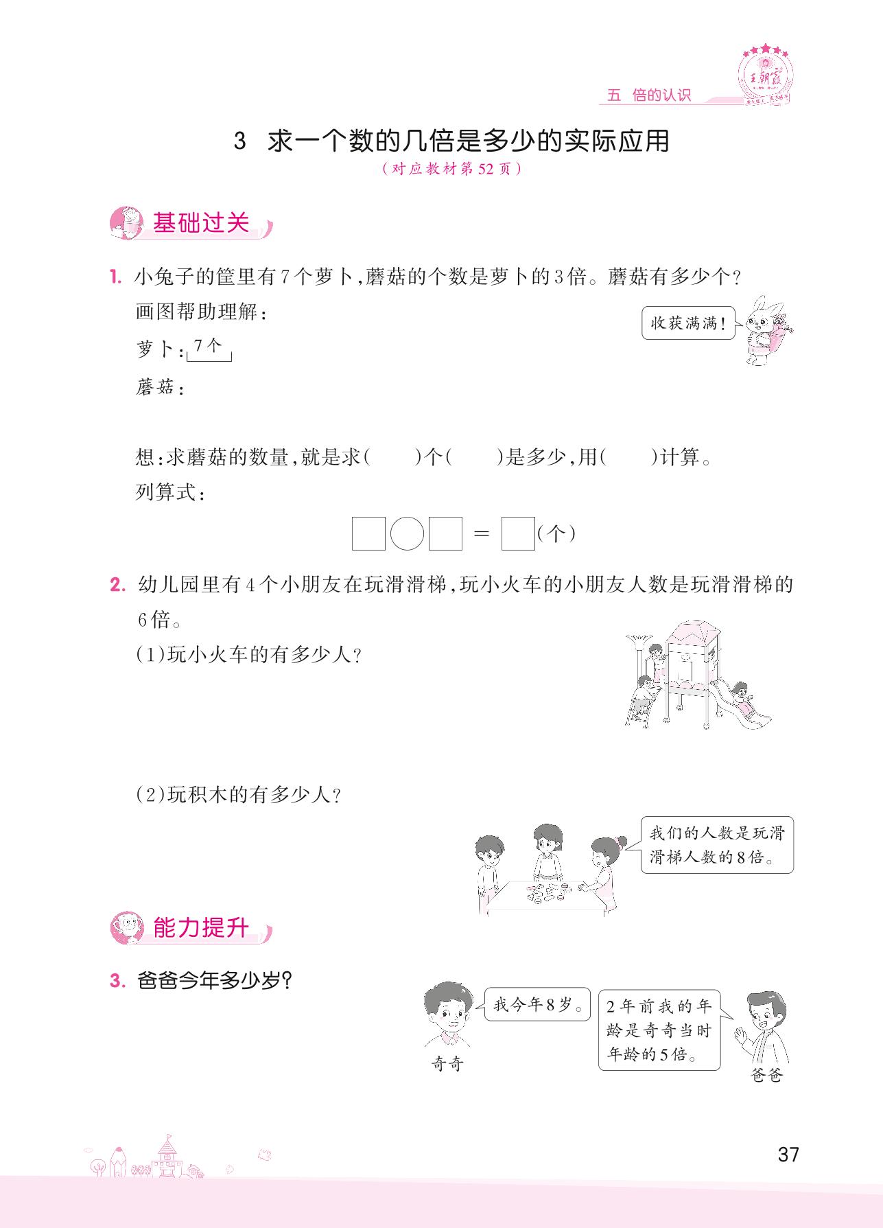 2022上册三年级数学人教版 五 倍的认识——3 求一个数的几倍是多少的实际应用