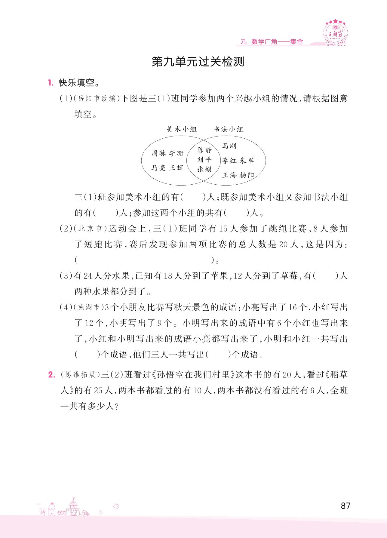 2022上册三年级数学人教版 九 数学广角 集合——第九单元过关检测