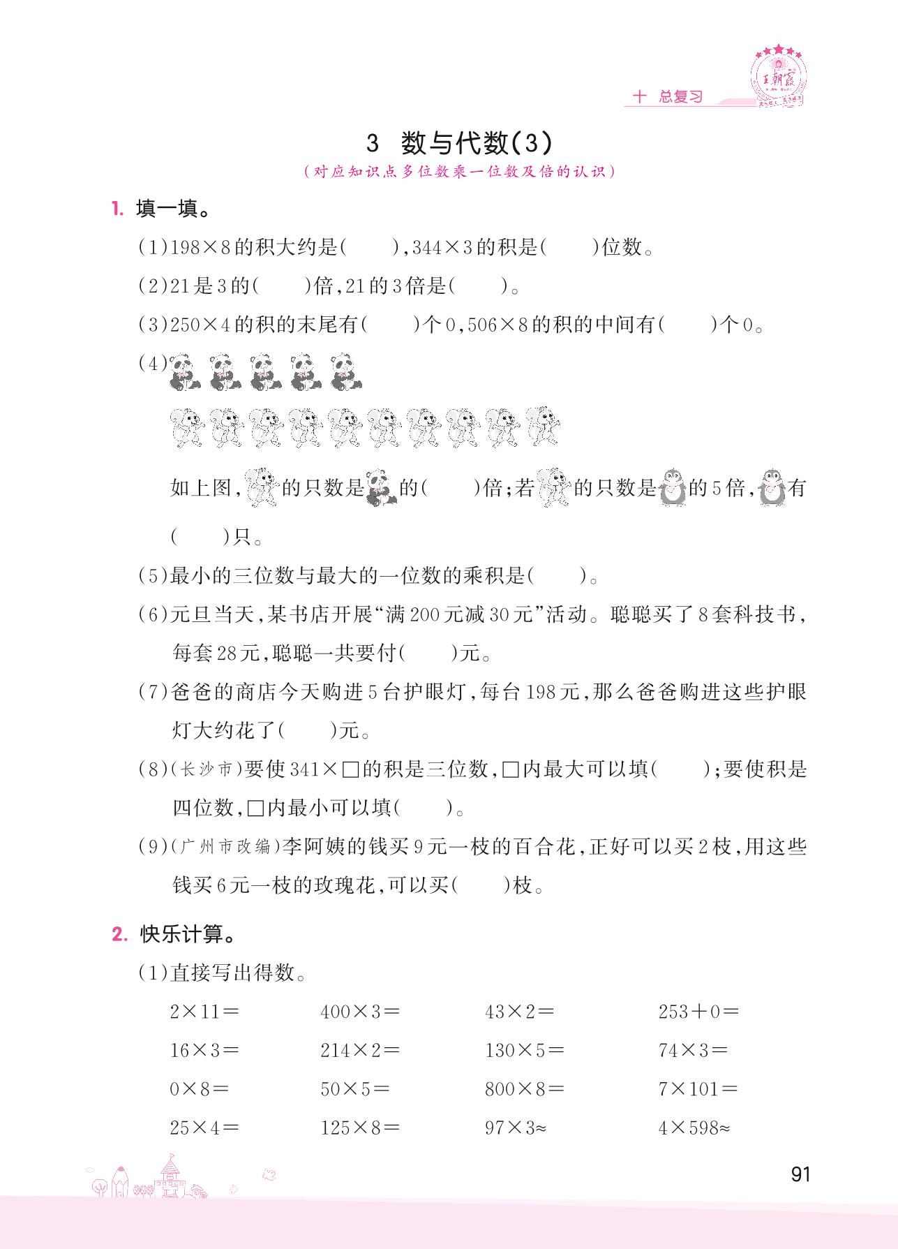 2022上册三年级数学人教版 十 总复习——3 数与代数(3)