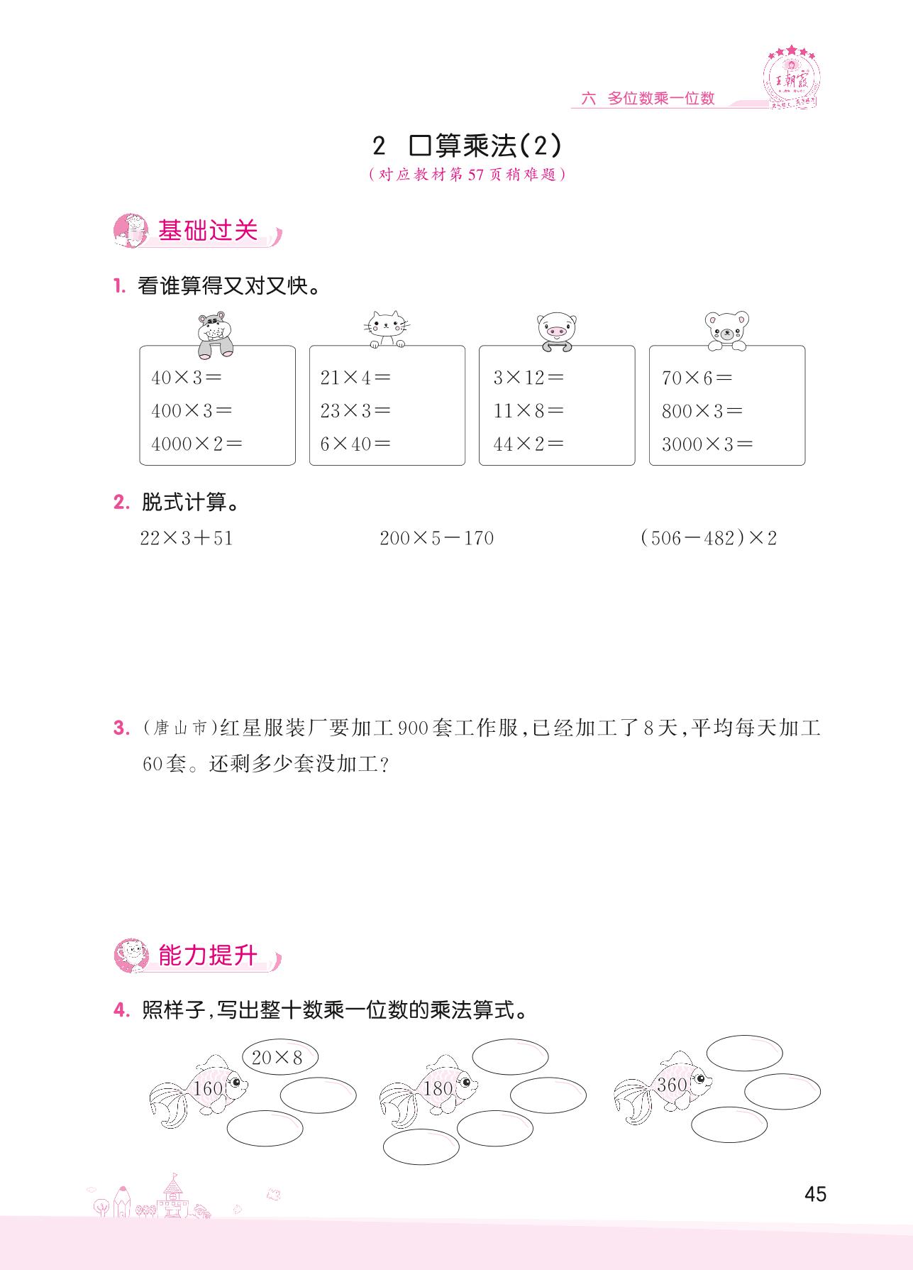 2022上册三年级数学人教版 六 多位数乘一位数——2 口算乘法(2)