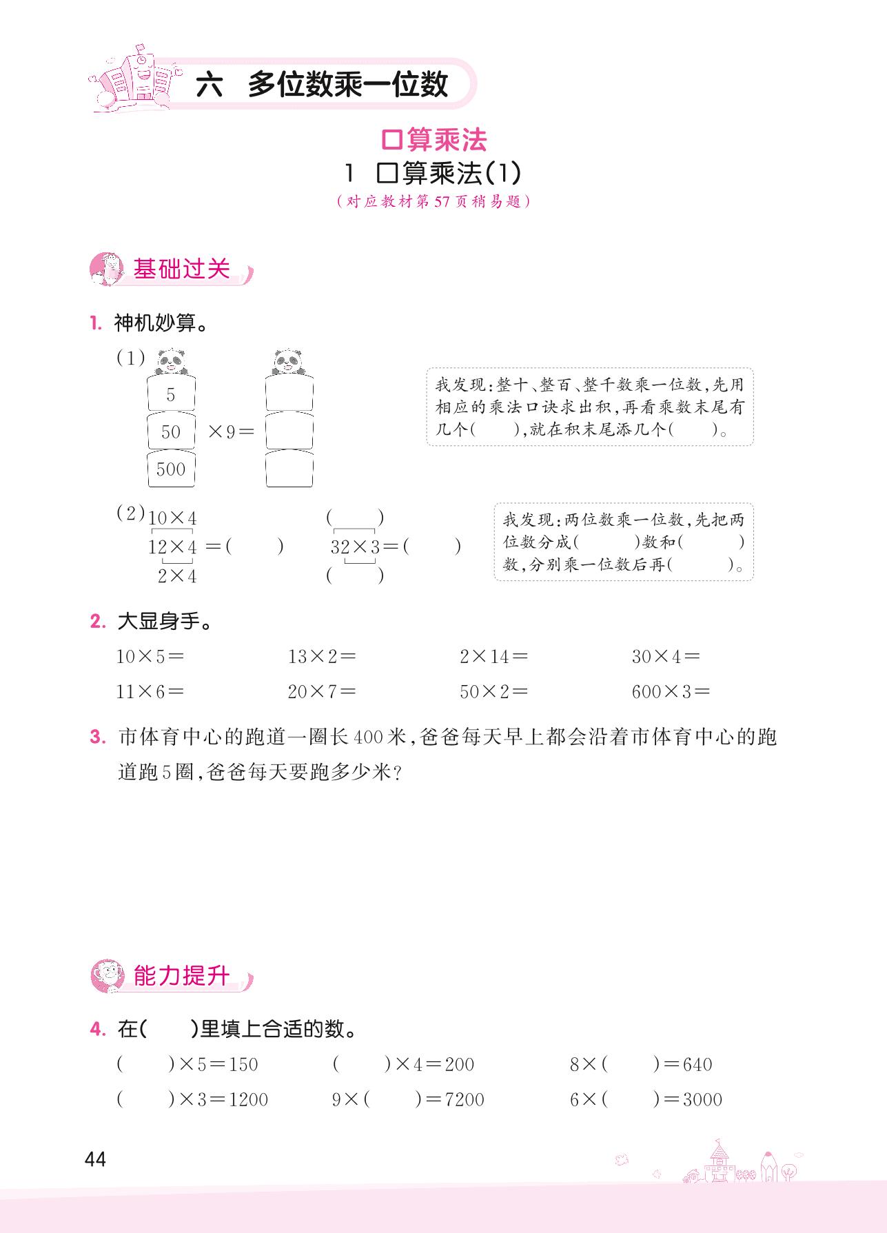 2022上册三年级数学人教版 六 多位数乘一位数——1 口算乘法(1)