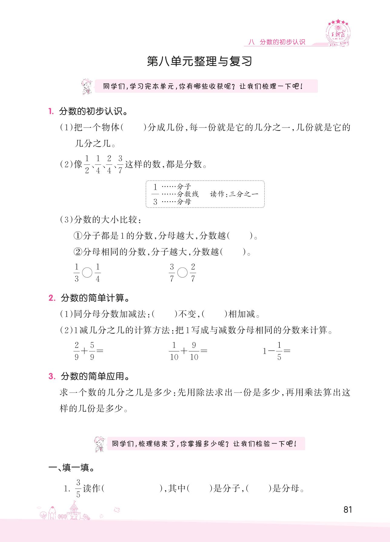 2022上册三年级数学人教版 八 分数的初步认识——第八单元整理与复习