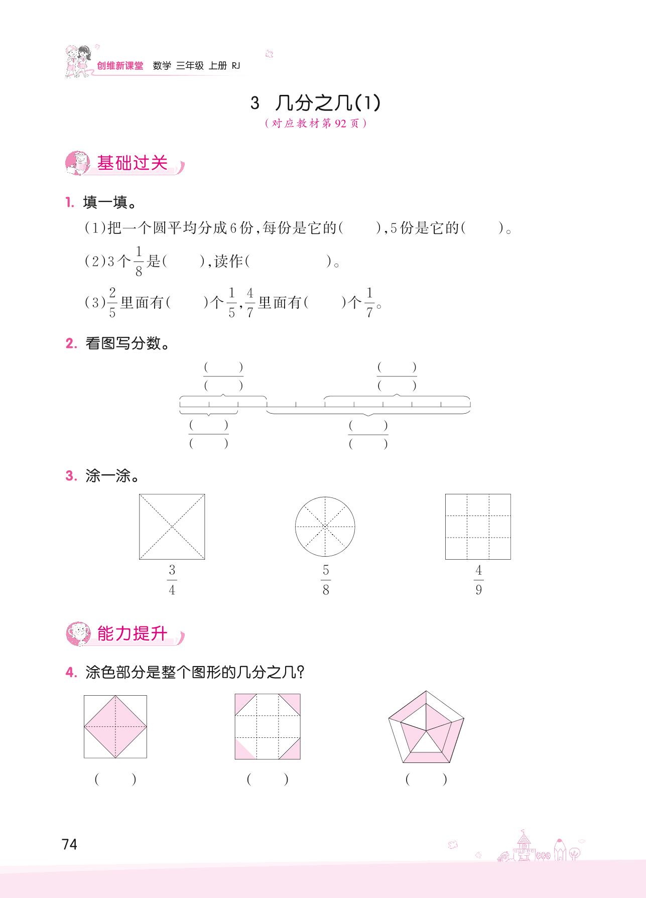 2022上册三年级数学人教版 八 分数的初步认识——3 几分之几(1)