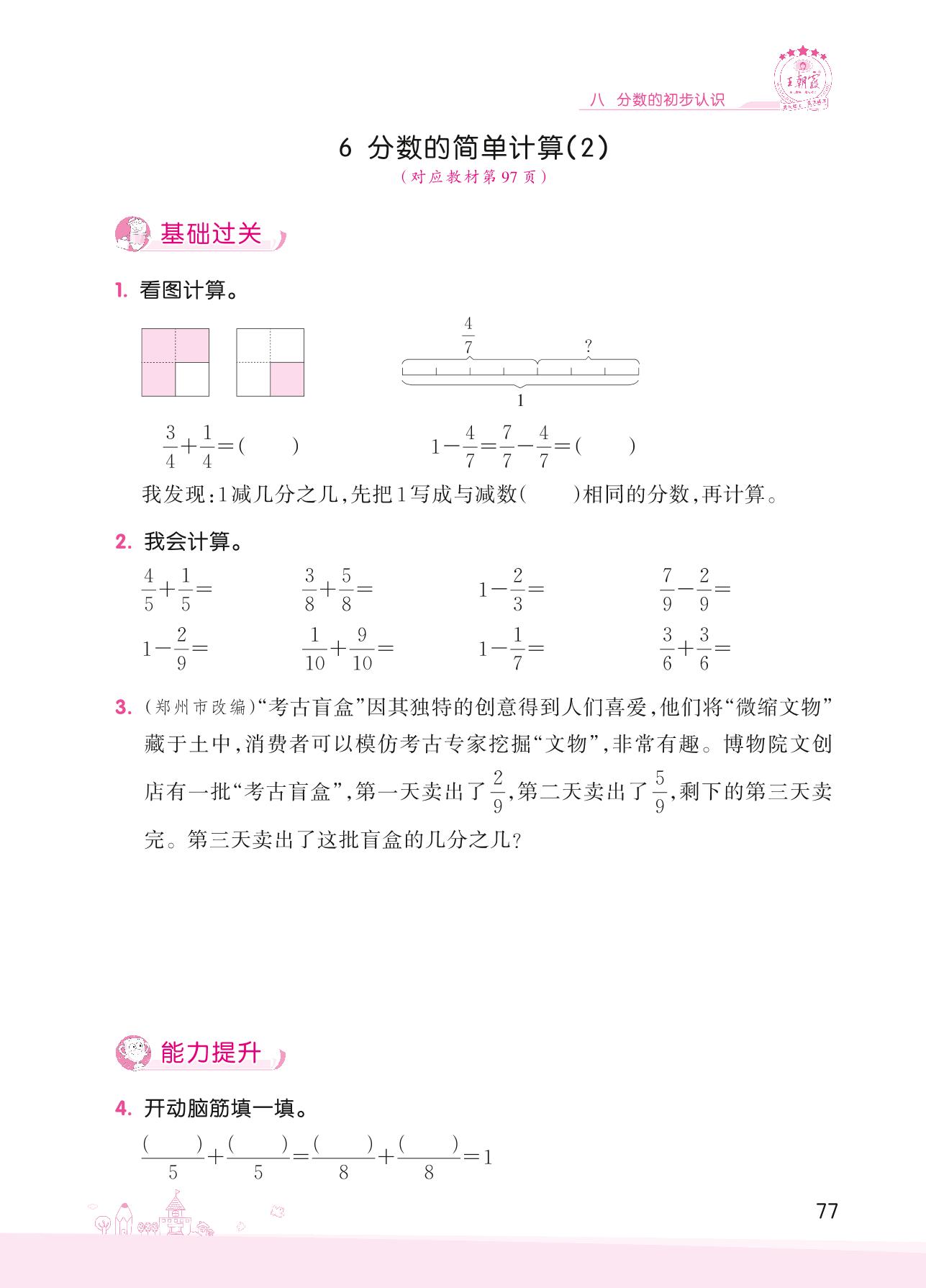 2022上册三年级数学人教版 八 分数的初步认识——6 分数的简单计算(2)