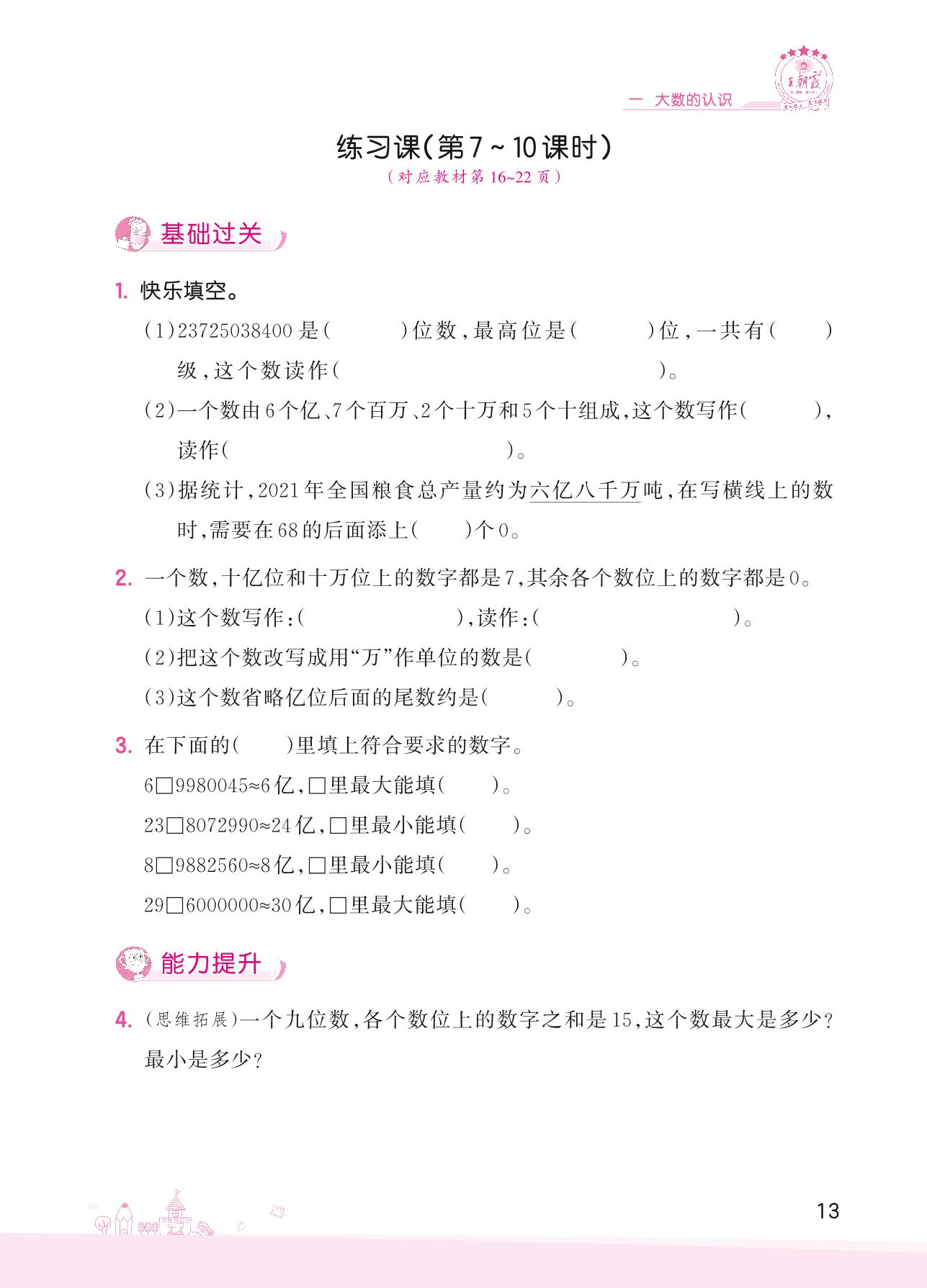 2022上册四年级数学人教版 一 大数的认识——练习课(第7~10课时)