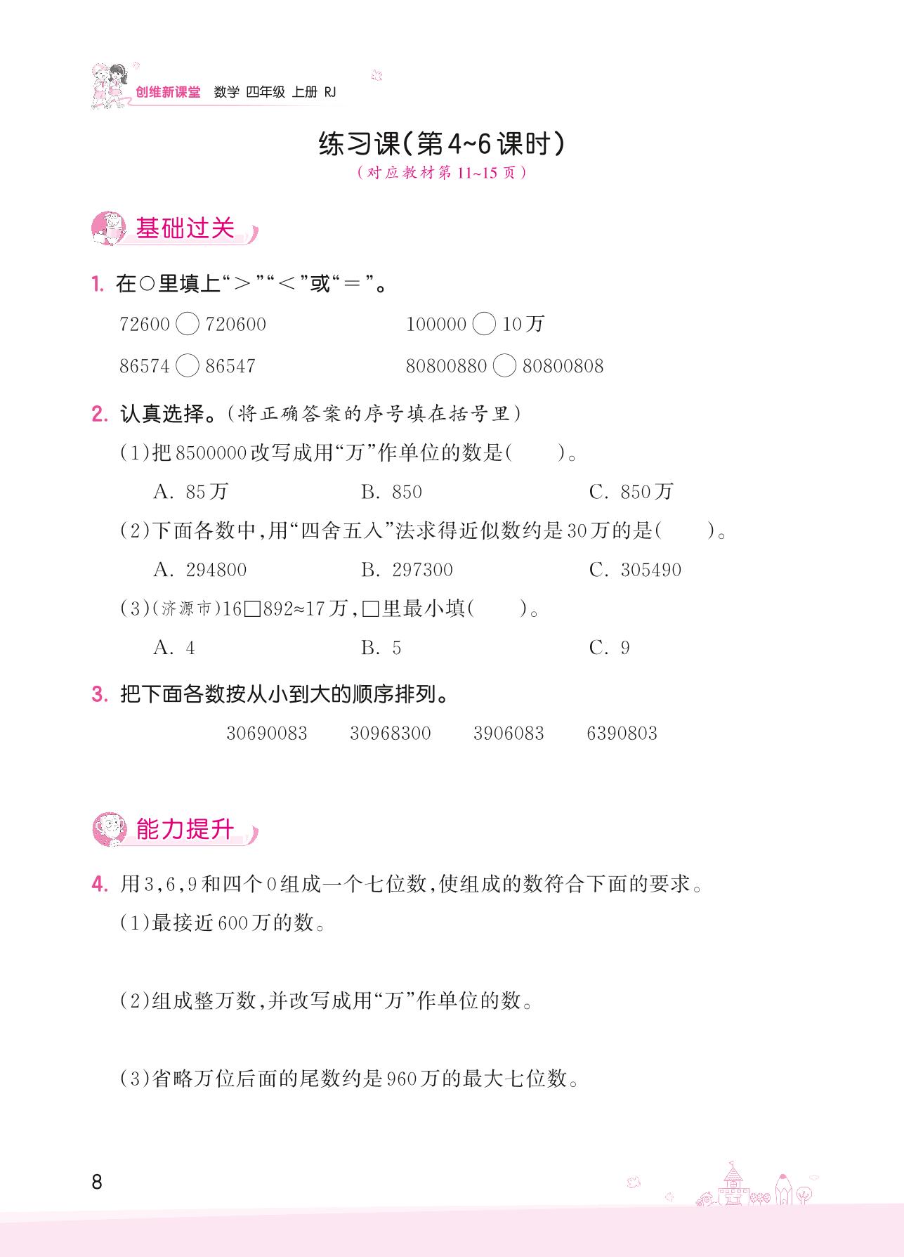 2022上册四年级数学人教版 一 大数的认识——练习课(第4~6课时)
