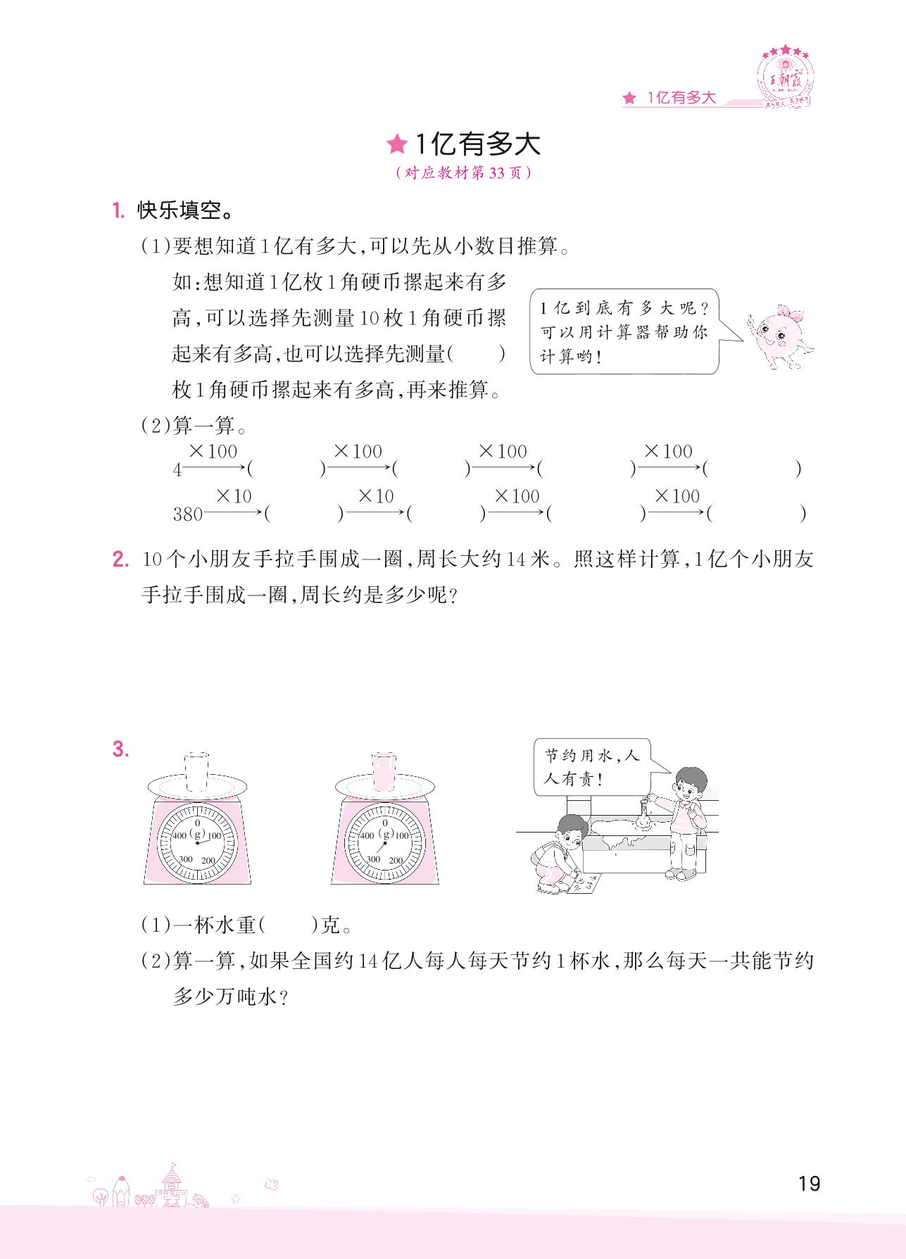 2022上册四年级数学人教版 一 大数的认识——1亿有多大