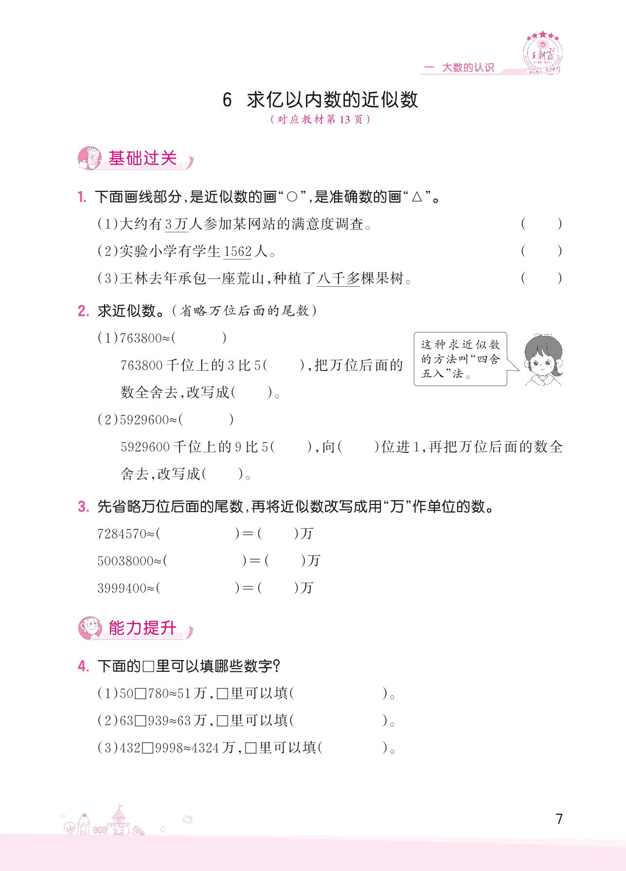 2022上册四年级数学人教版 一 大数的认识——6 求亿以内数的近似数