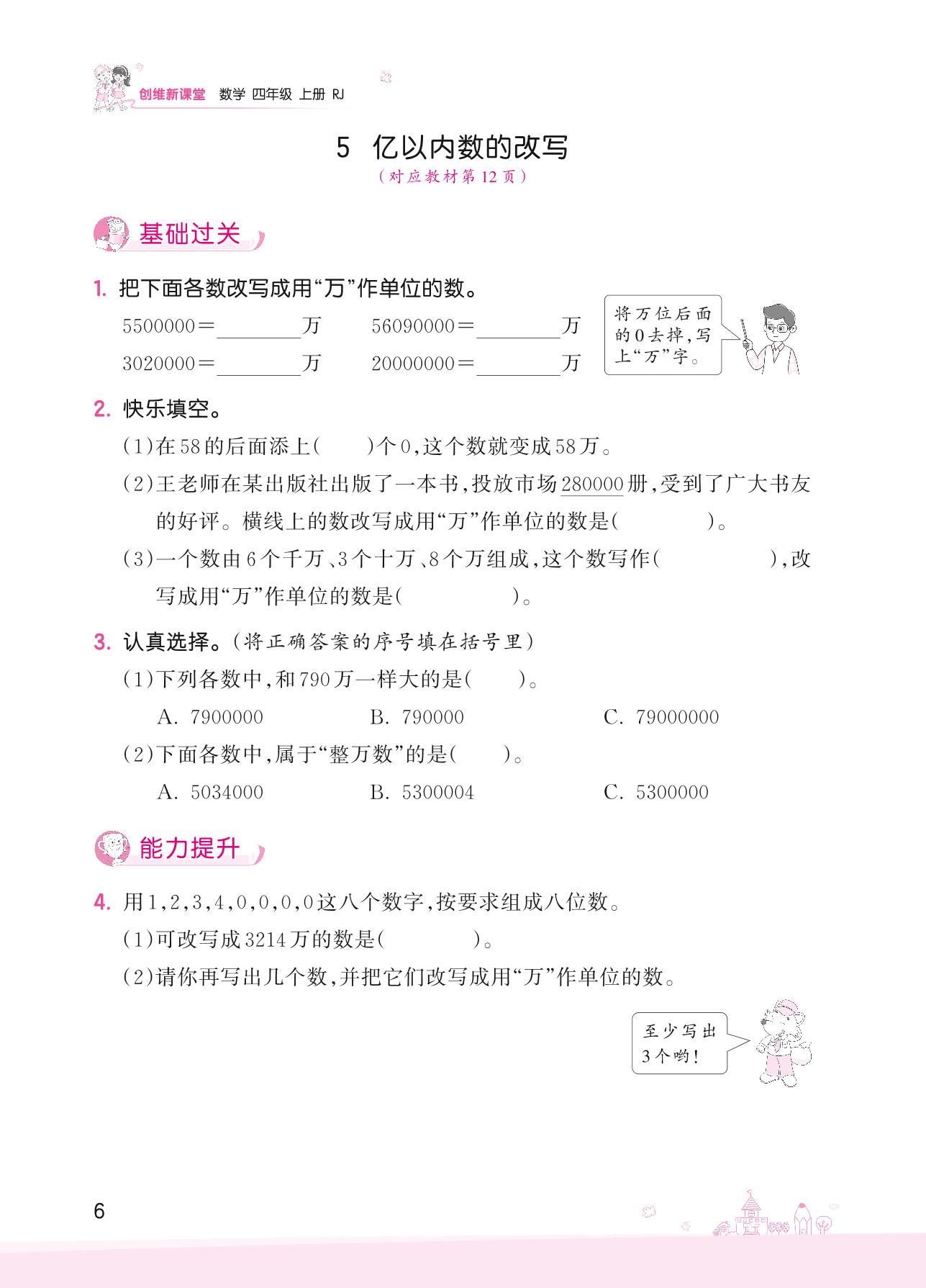 2022上册四年级数学人教版 一 大数的认识——5 亿以内数的改写