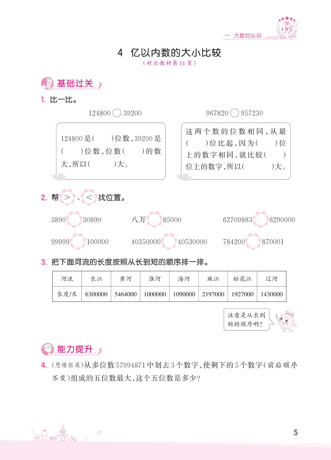 2022上册四年级数学人教版 一 大数的认识——4 亿以内数的大小比较