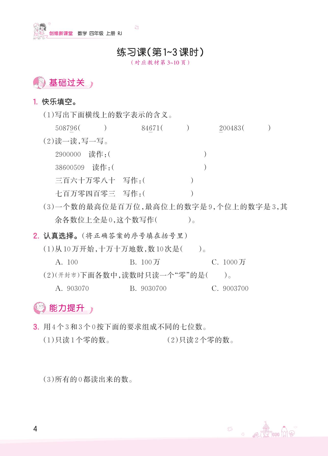 2022上册四年级数学人教版 一 大数的认识——练习课(第1~3课时)