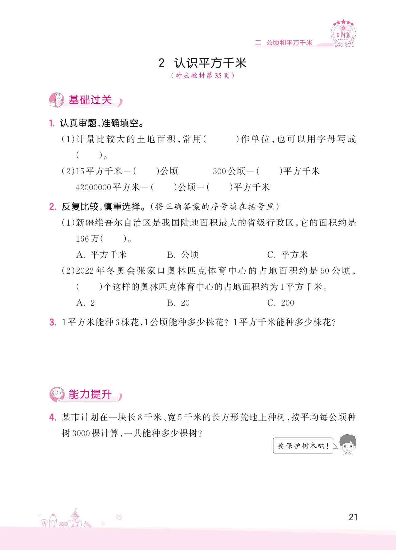 2022上册四年级数学人教版 二 公顷和平方千米——2 认识平方千米