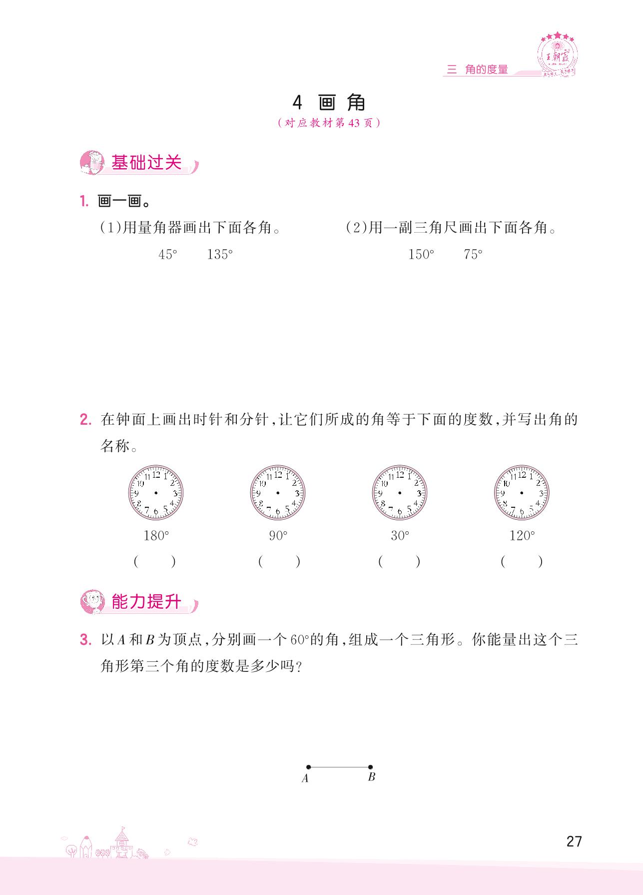 2022上册四年级数学人教版 三 角的度量——4 画角