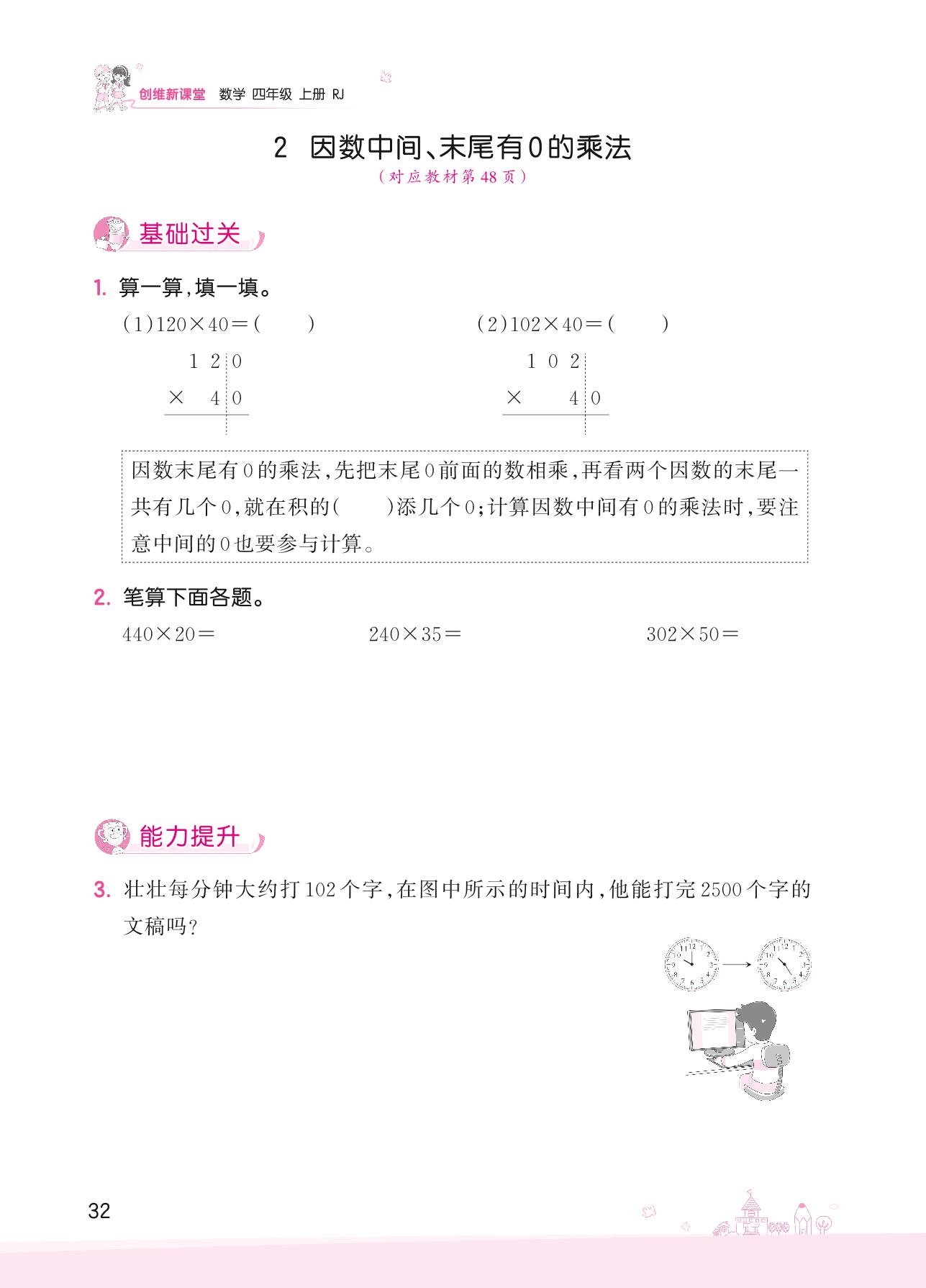 2022上册四年级数学人教版 四 三位数乘两位数——2 因数中间、末尾有0的乘法