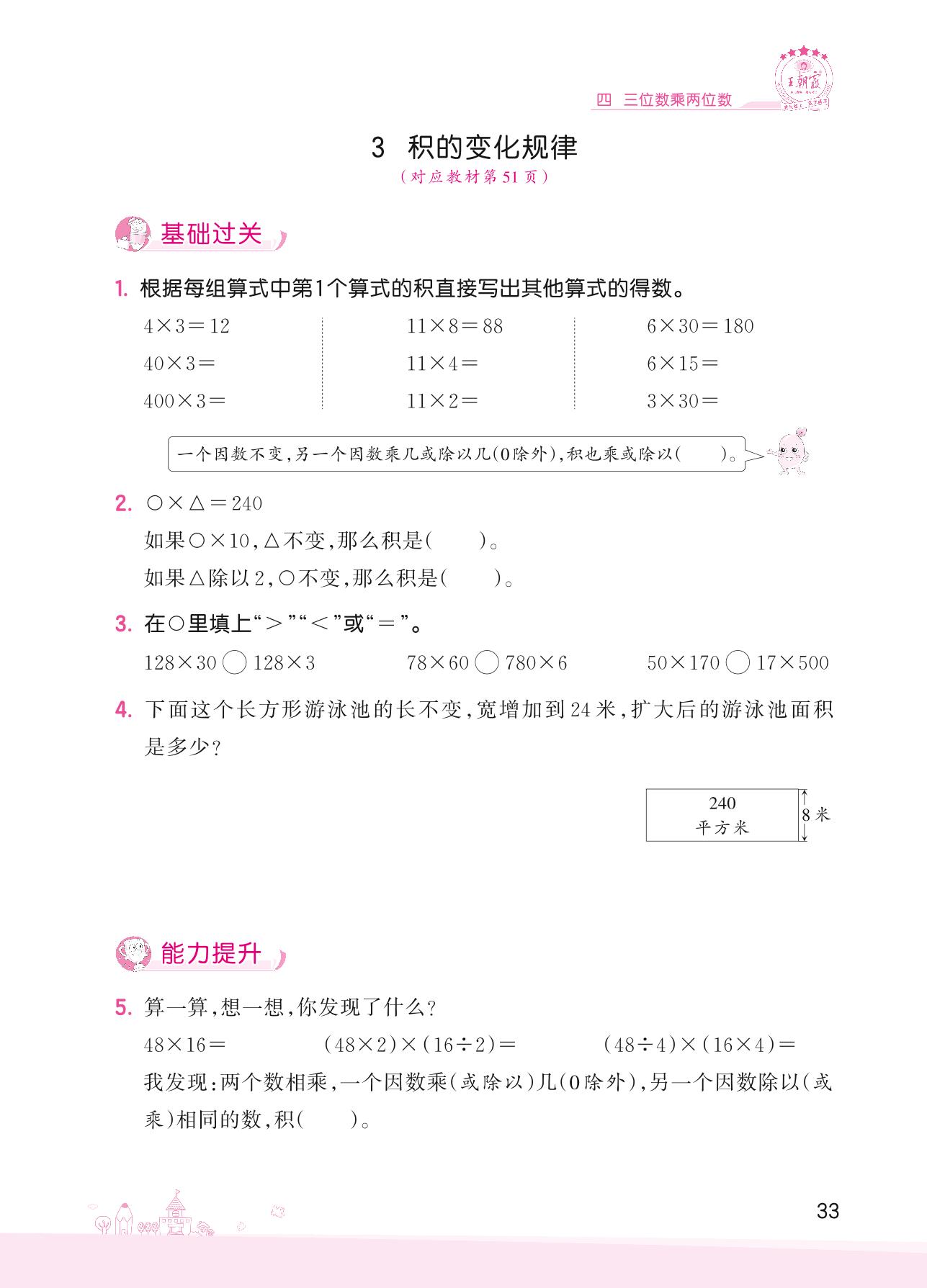 2022上册四年级数学人教版 四 三位数乘两位数——3 积的变化规律