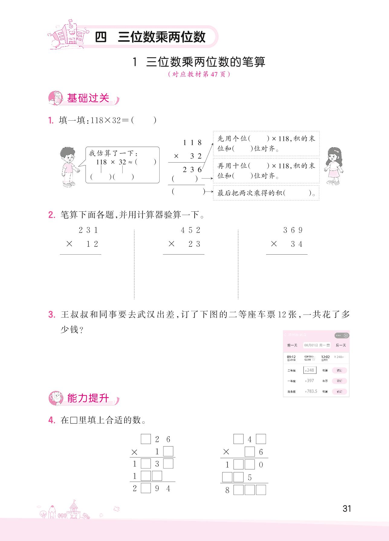 2022上册四年级数学人教版 四 三位数乘两位数——1 三位数乘两位数的笔算